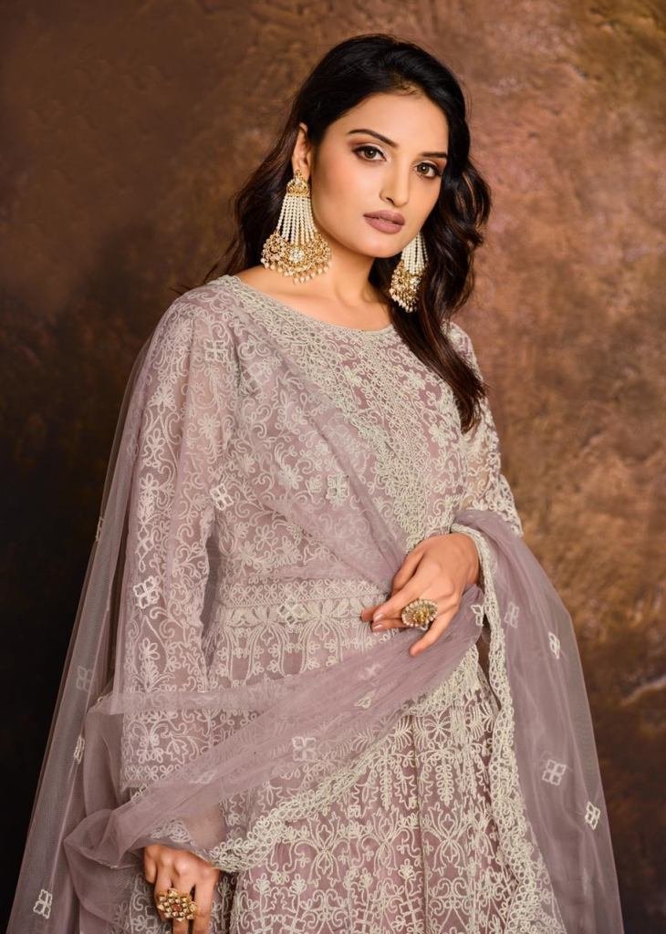 | NAME : | Aanaya Anarkali Designer Gown Net With Coding Embroidery Purple Color DN 1901 |