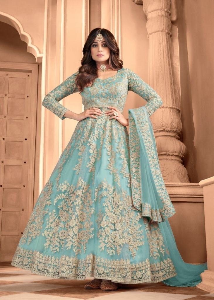 | NAME : | Aashirwad Creation Advika gold Gown Anarkali Gown Sea Green Color DN 8356 |