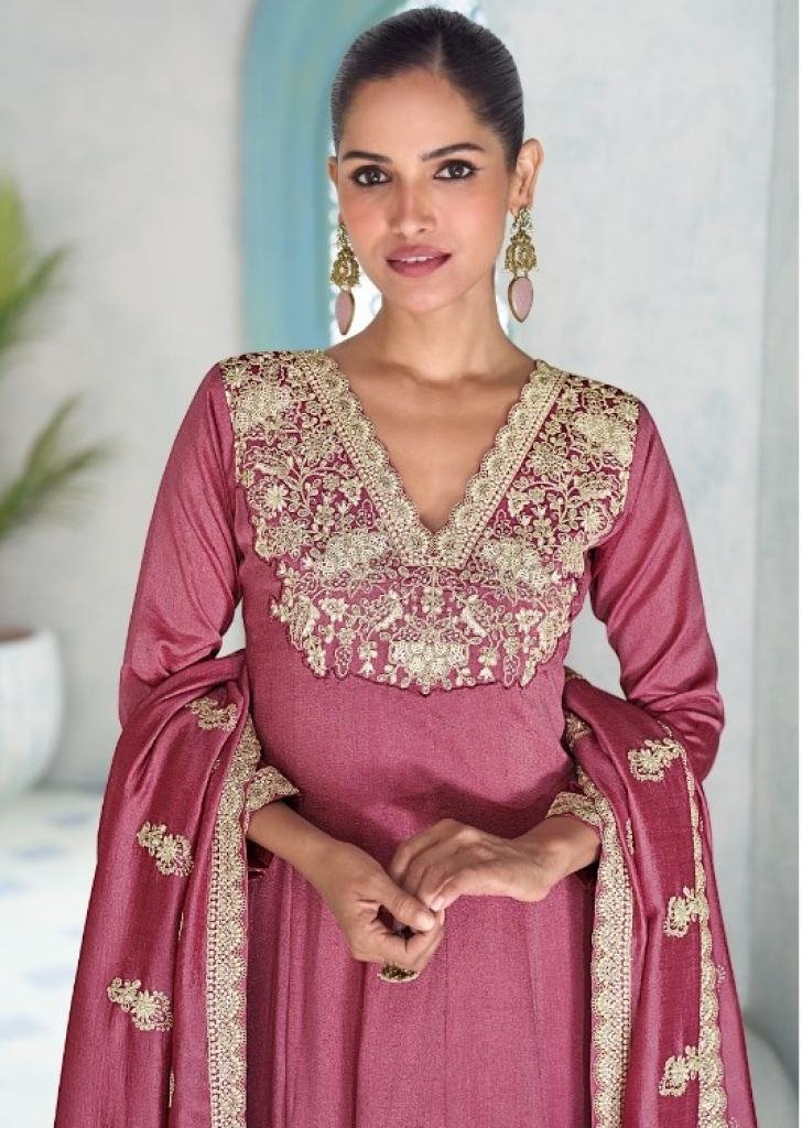 Aashirwad Creation Mor Bagh By Vihanika Anarkali Gown Heavy Premium Silk With Heavy Embroidery Sequence Codding Work Pink Color DN 10446