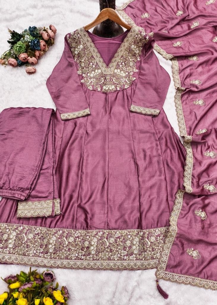 BOTTOM- Heavy Premium Silk With Heavy Embroidery Sequence Codding Work ( Fully Stichad)