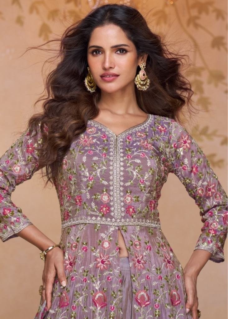 | NAME : | Aashirwad Creation Mor Bagh Prachi Salwar Suit Anarkali Gown Style Premium Chinon With Heavy Embroidery Work lavender Color DN 10373 |