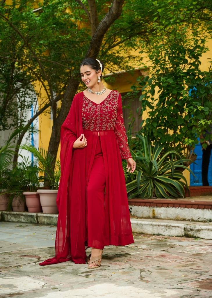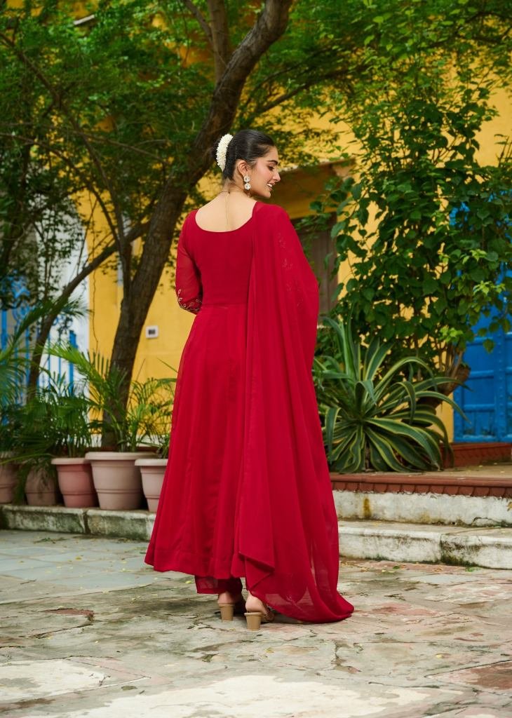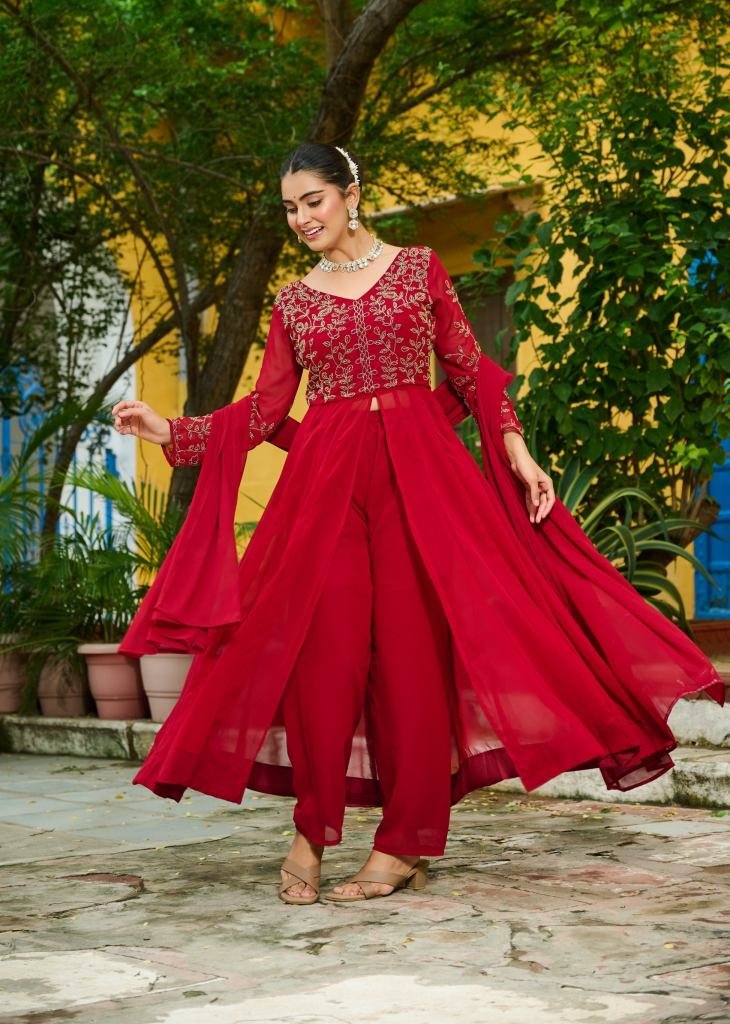 | NAME : | Anarkali Gown With Faux Blooming Fabric And Multithreaded Beads Embroidery Sequence Work Maroon Color DN 1201 |