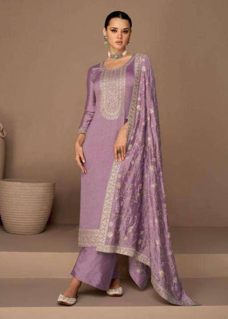 | NAME : | Ashirwad Creation Dhaga Heavy Vichitra Salwar Suit With Embroidery Sequence Work Lavender Color DN 9525 |