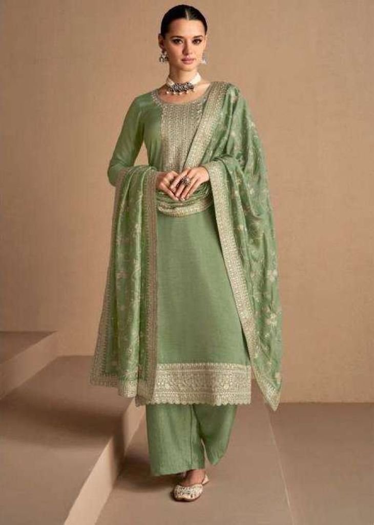 | NAME : | Ashirwad Creation Dhaga Heavy Vichitra Salwar Suit With Embroidery Sequence Work Pista Green Color DN 9526 |