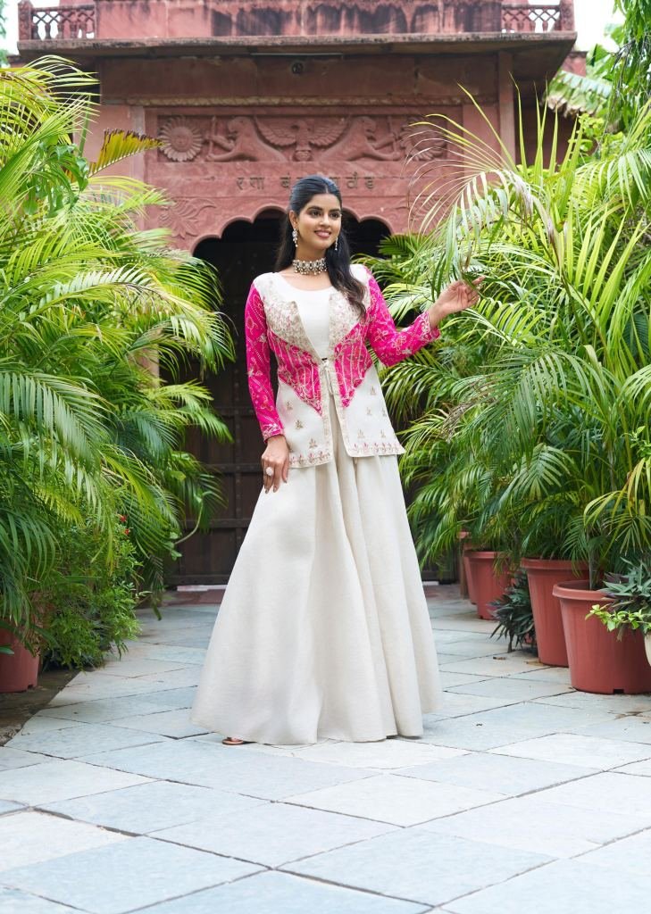| NAME : | Bandhej Koti Palazzo With Choli Set Crafted In Pure Cosmos Silk White And Pink Color DN 111 |