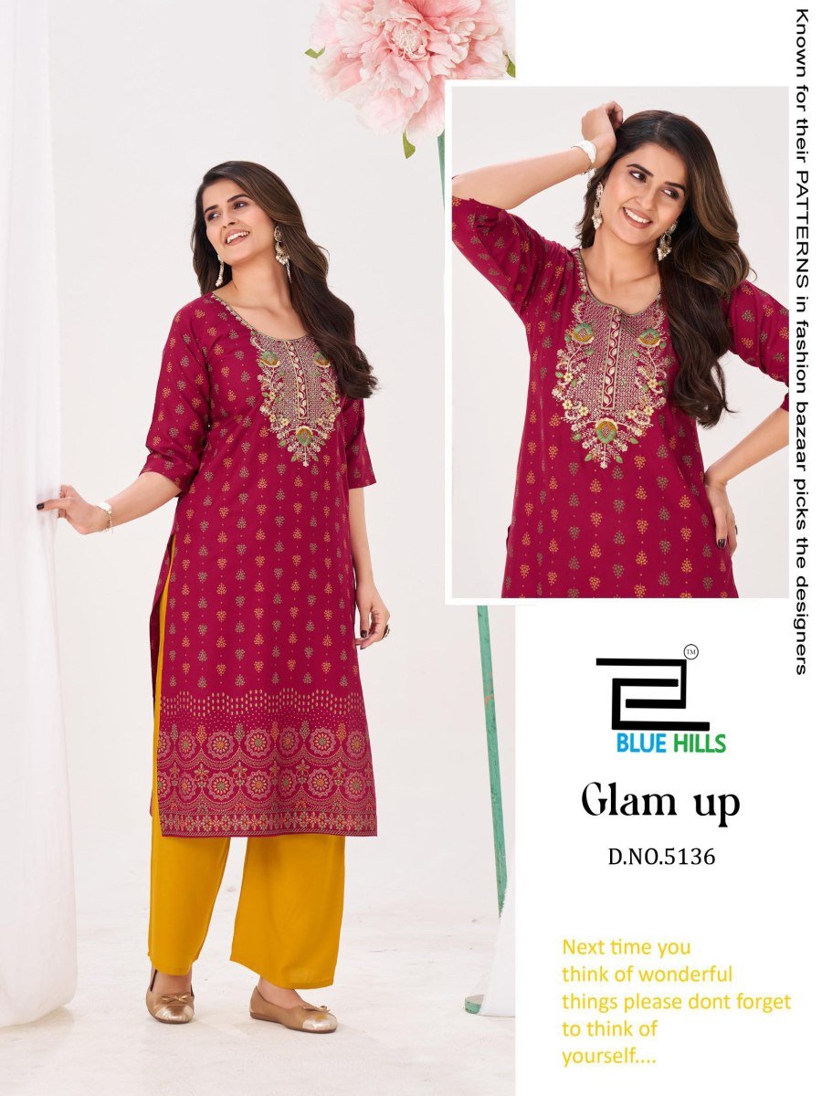 | NAME : | Blue Hills Glam Up Rayon With Thread And Sequence Work Casual Wear Kurti And Palazzo Collection |
