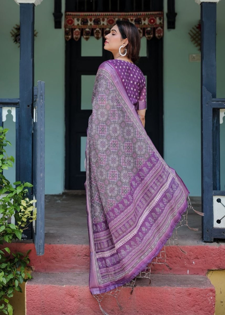 | NAME : | DN 123 Pure Linen Saree With Elegant Tassels For A Bold Style Statement Purple Color |