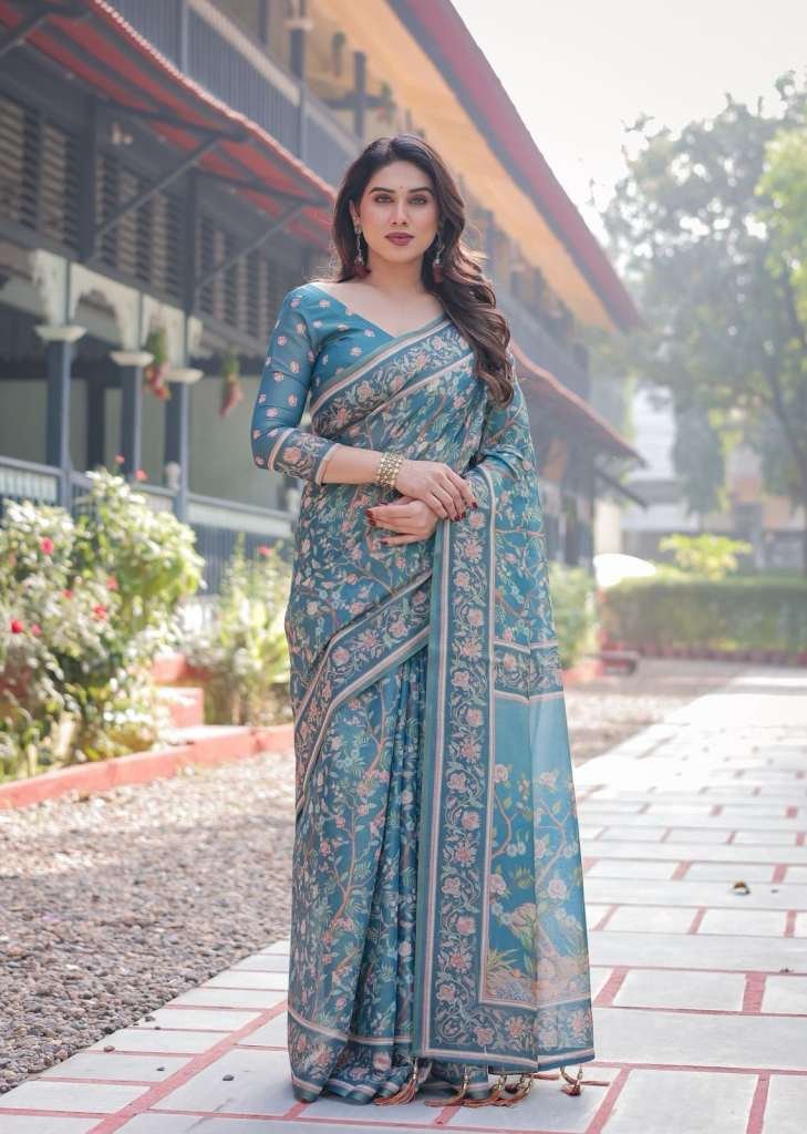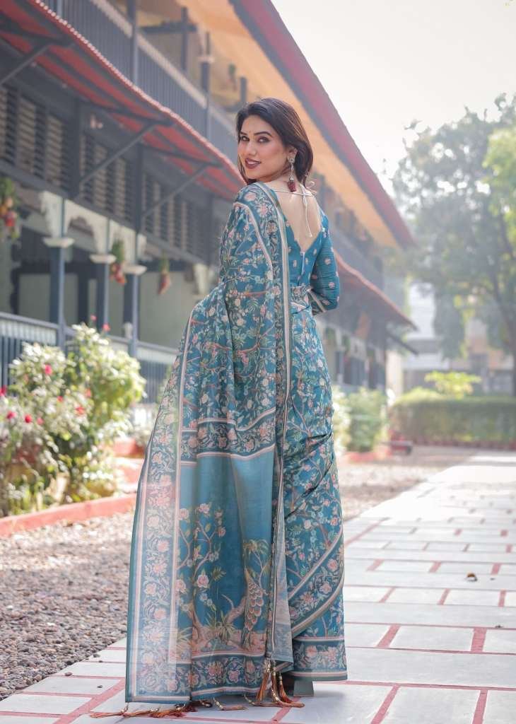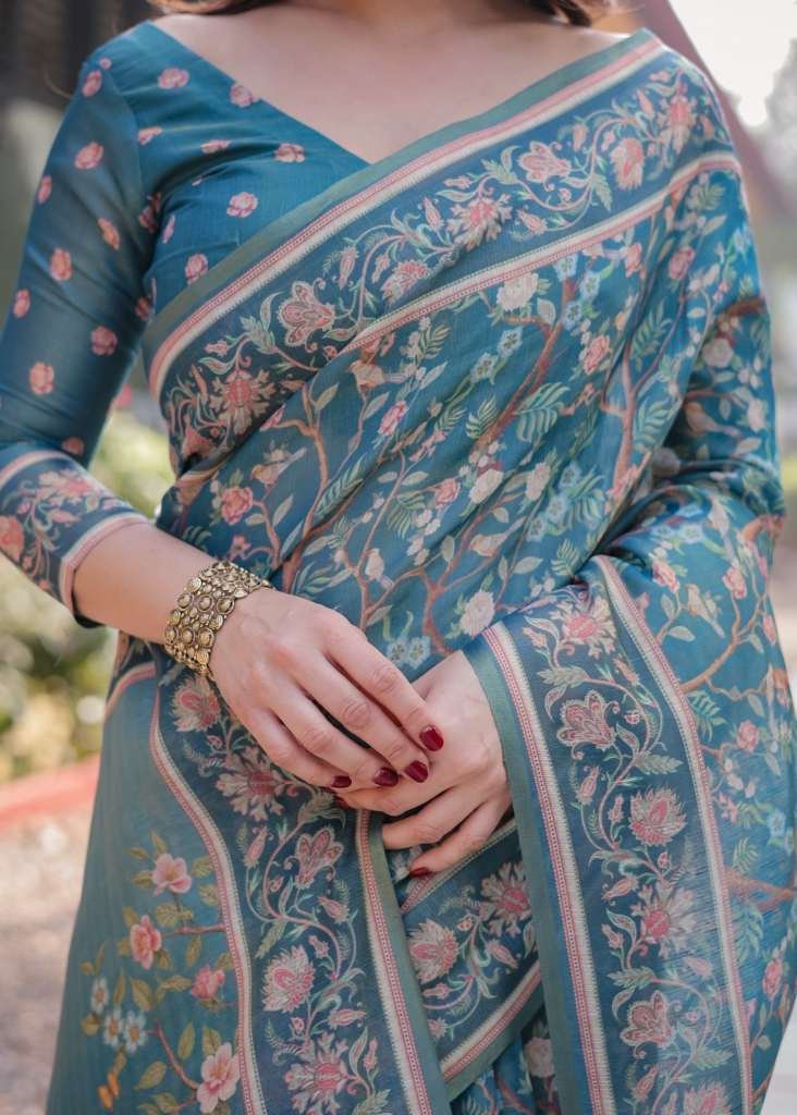 | NAME : | DN 175 Premium Pure Handloom Teal Blue Saree With Multicolor Floral Vine Print And Designer Pallu Teal Blue Color |