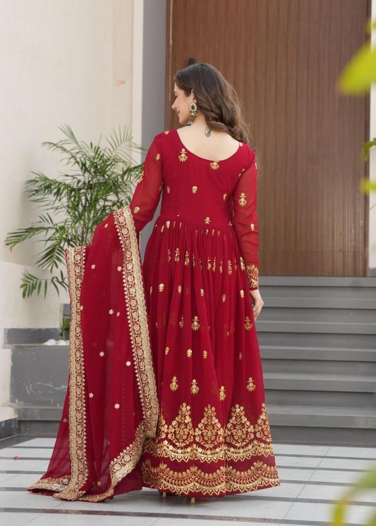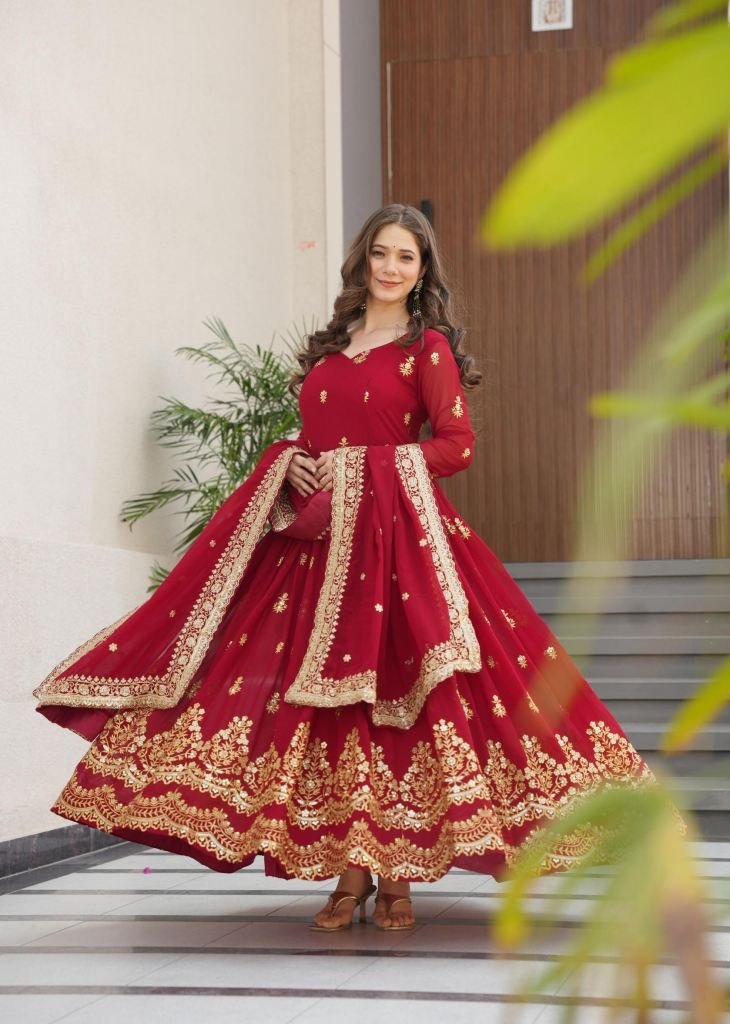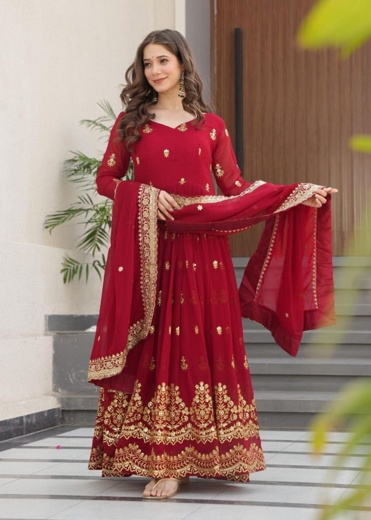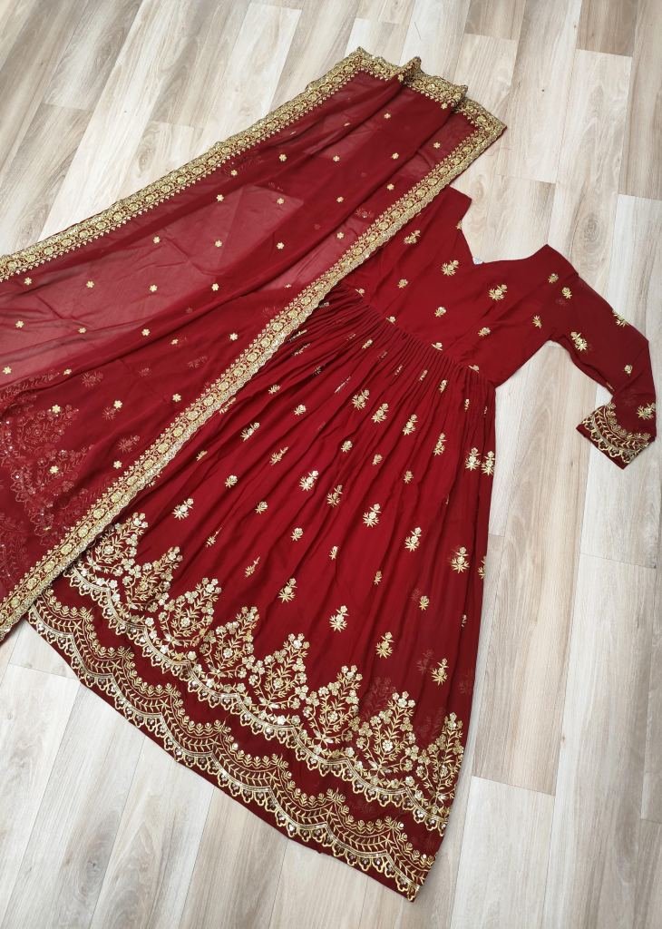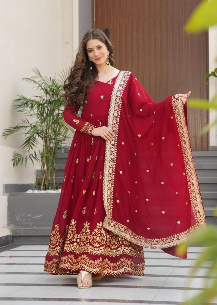 | NAME : | Designer Anarkali Gown Faux Blooming With Embroidery Sequence Work Maroon Color DN 9279 |