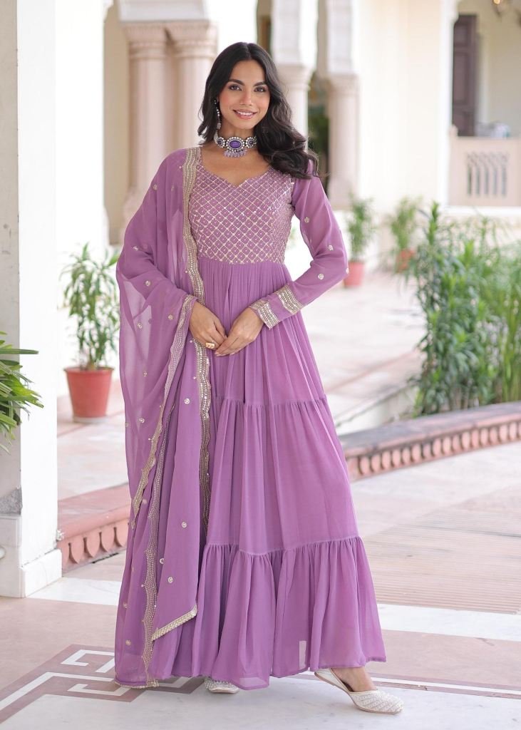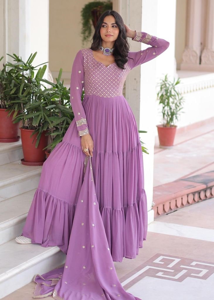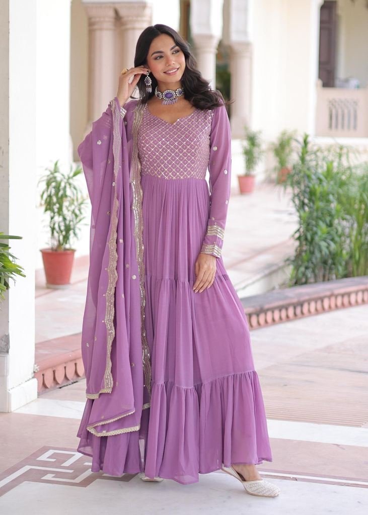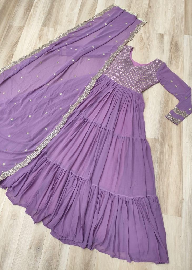 | NAME : | Designer Anarkali Gown Faux Georgette With Embroidery Sequence Work Dupptta Purple Color LW DN 9280 |