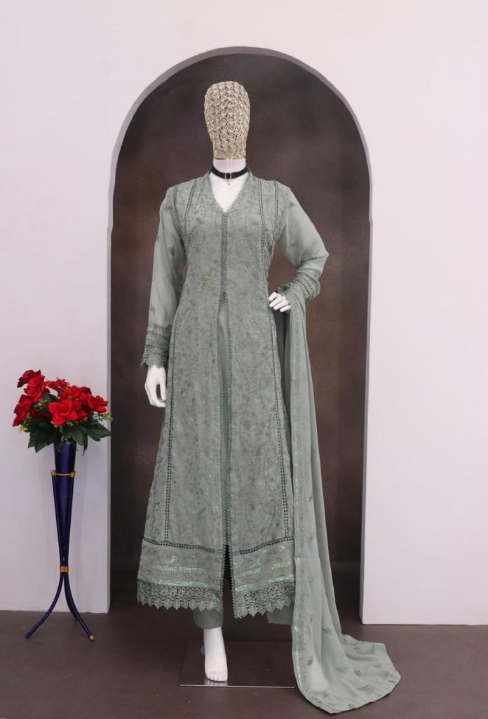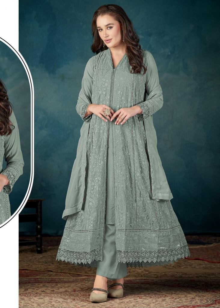 | NAME : | Designer Anarkali Gown Heavy Faux Georgette With Embroidery Sequence Work Sea Green Color DN 4217 |