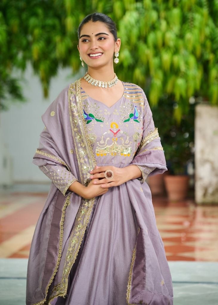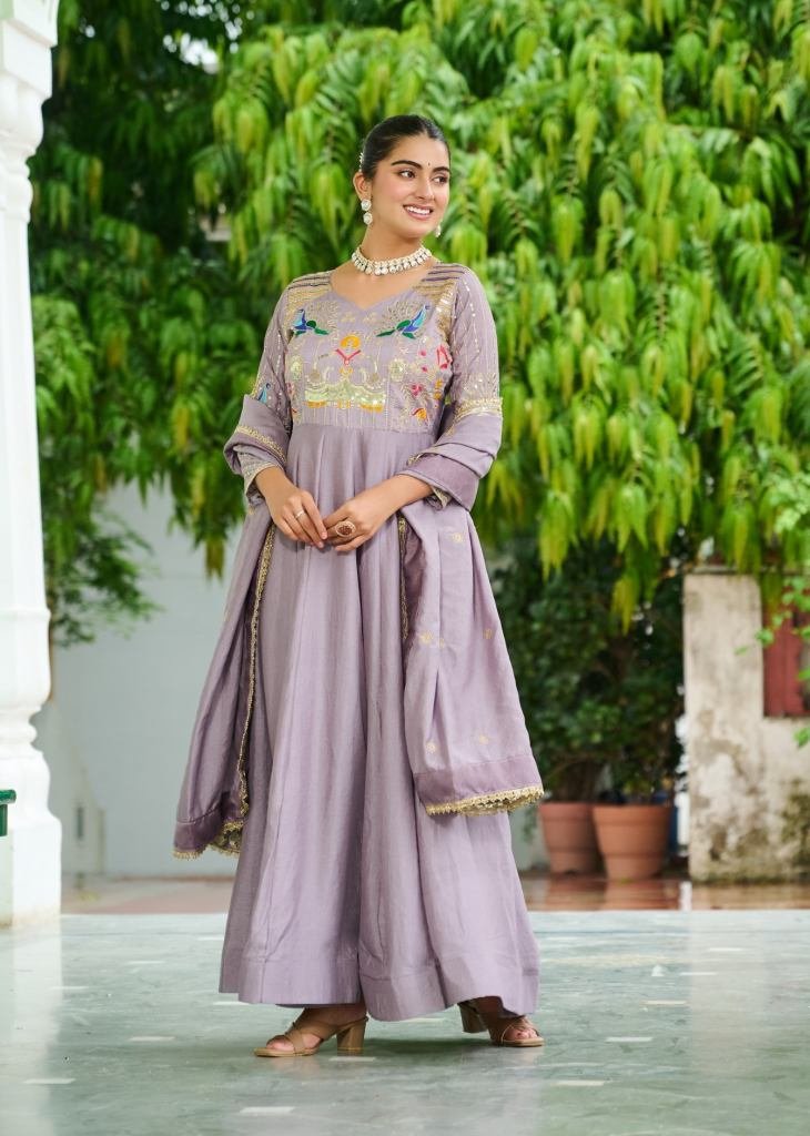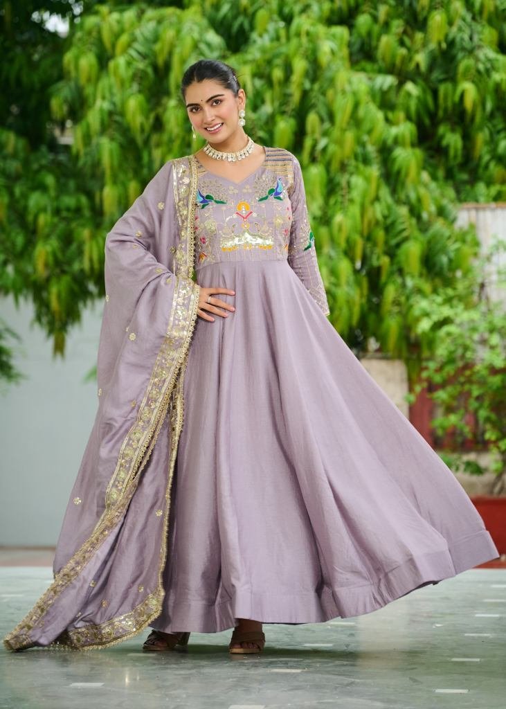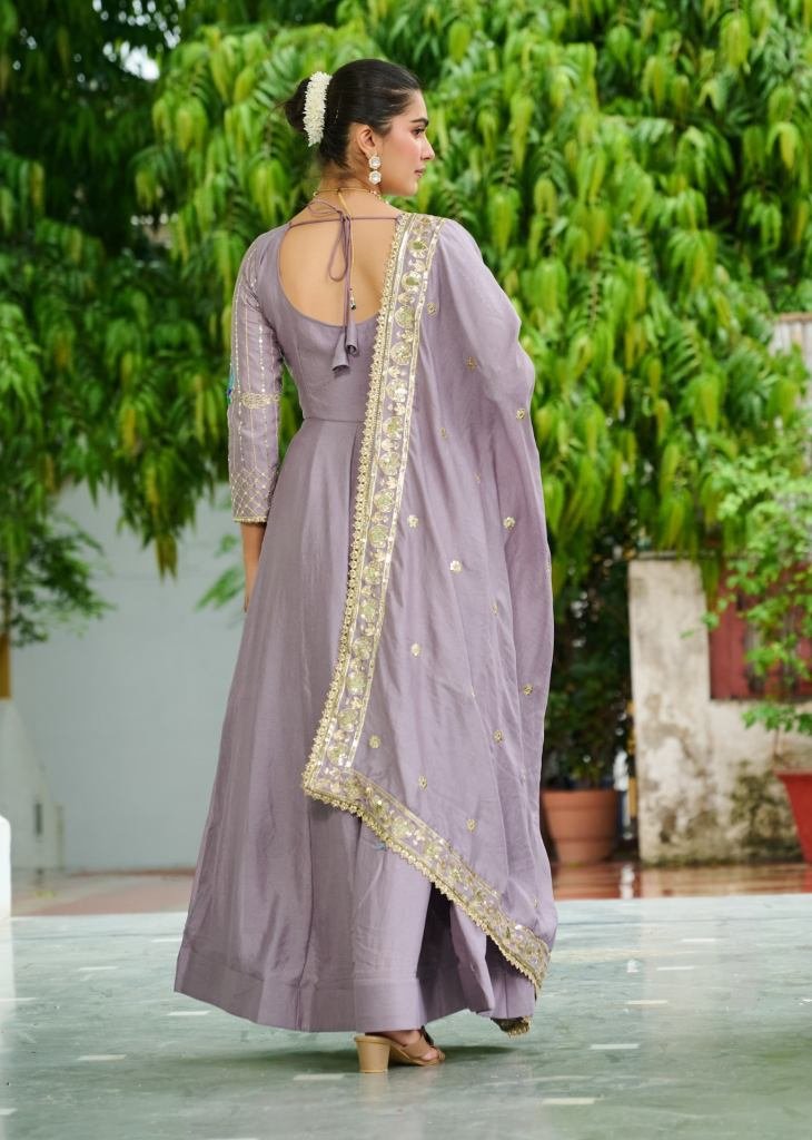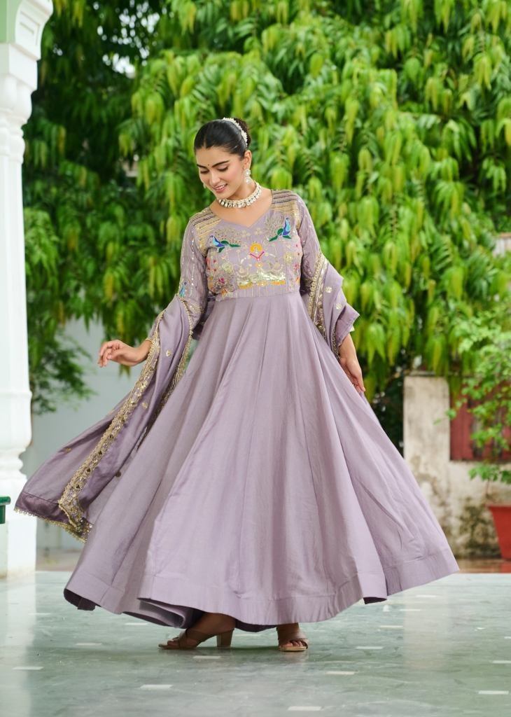 | NAME : | Designer Anarkali Gown Vichitra Silk With Embroidery Rich Sequence Work lavender Color LW DN 9299 |