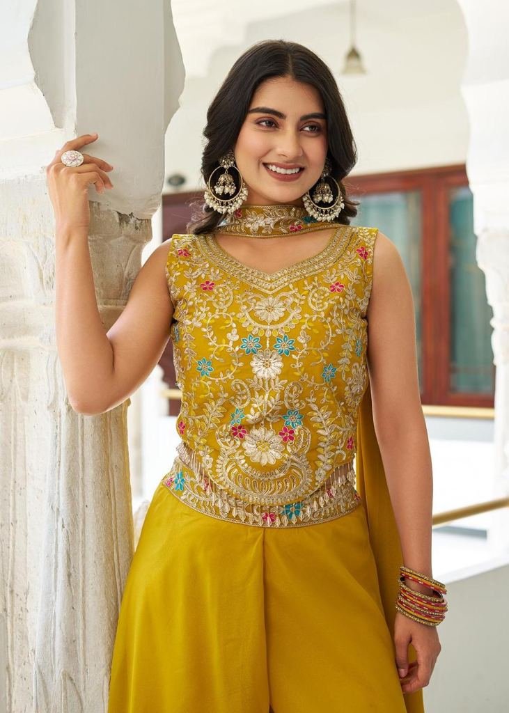 Designer Blouse Palazzo With Dupatta Star Georgette With Sequence And Embroidery Work Indo Western Yellow Color RM DN 107