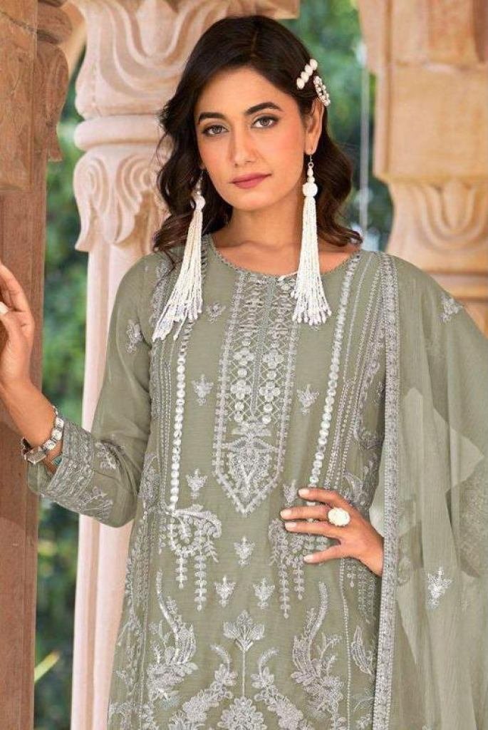 | NAME : | Designer Embroidered Palazzo Suit With Real Hand Mirror Work Ash Green Color DN 1316 |