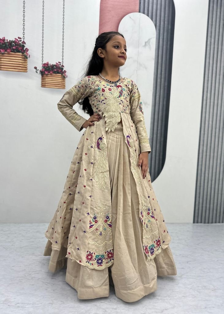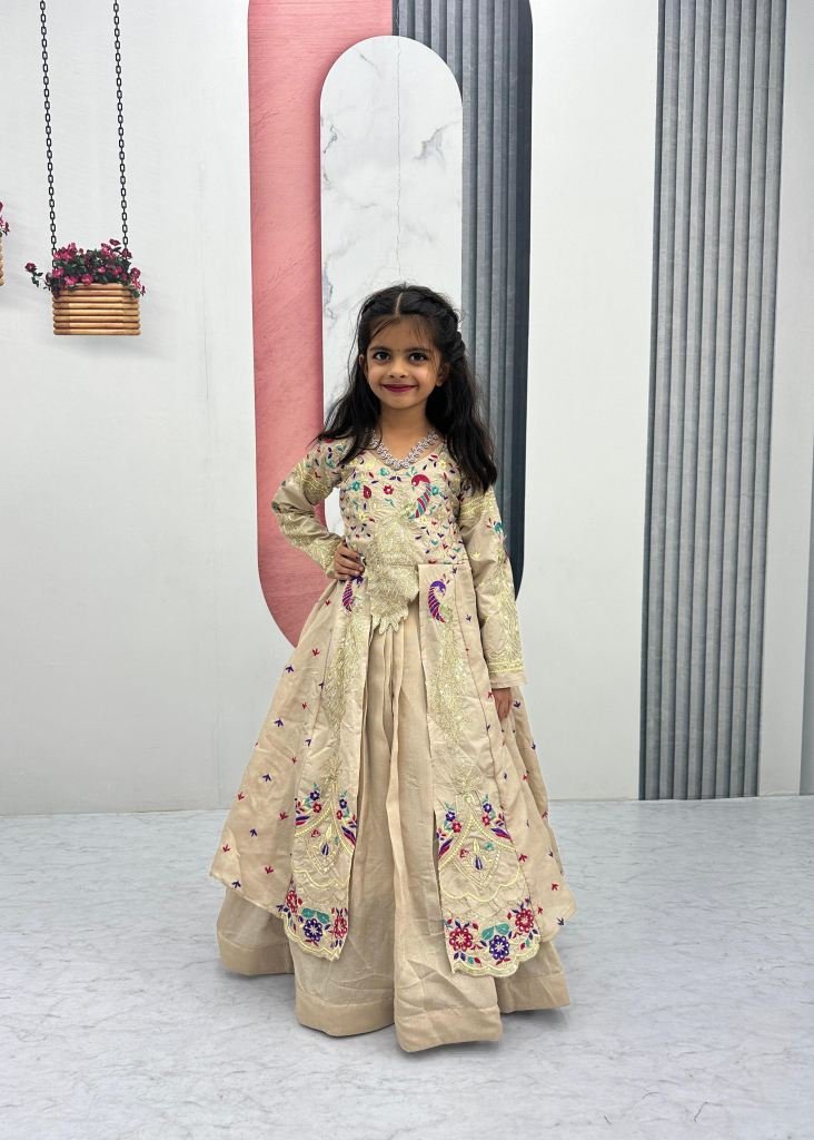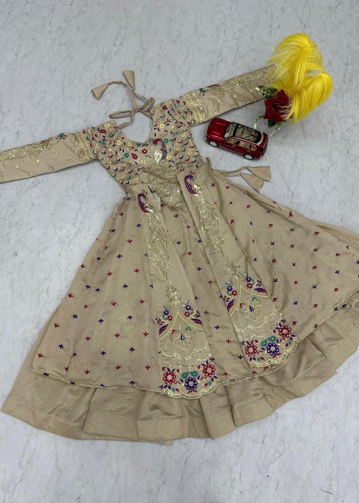 | NAME : | Designer Festival Special Kids Wear With Heavy Thread And Sequence Work In Pure Vichitra Fabric Beige Color DN 528 |