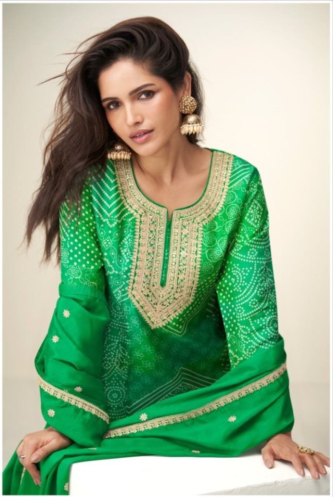 | NAME : | Designer Heavy Chinon Digital Print With Embroidery Coding Sequence Work Palazzo Suit Parrot Color DN 10413 |