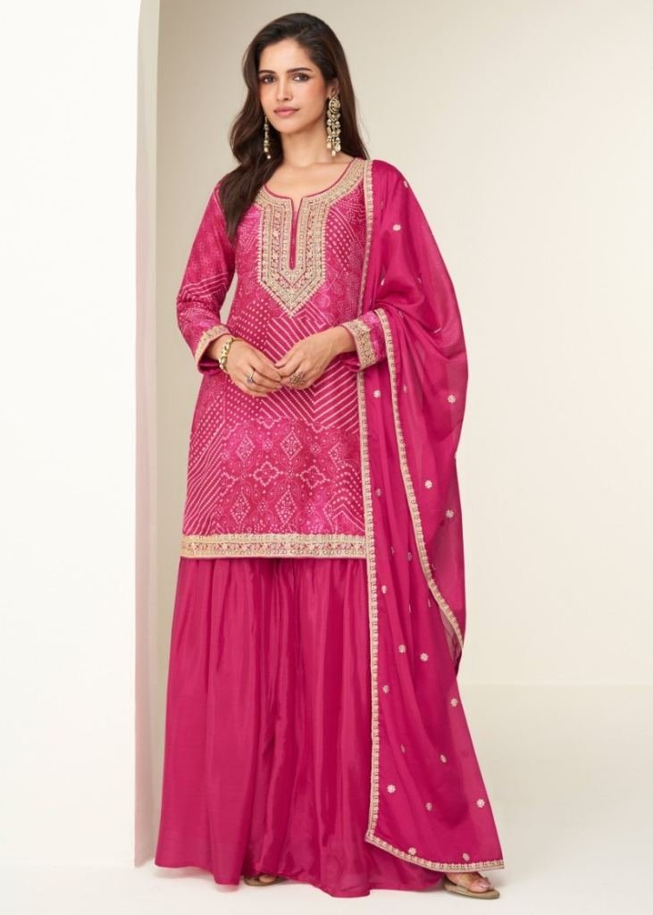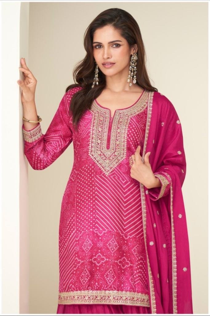 | NAME : | Designer Heavy Chinon Digital Print With Embroidery Coding Sequence Work Palazzo Suit Pink Color DN 10415 |