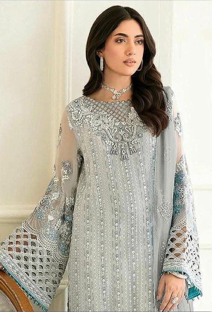| NAME : | Designer Heavy Faux Georgette With Embroidery Sequence Work And Khatli Work Pakistani Suit Grey Color DN 189 |