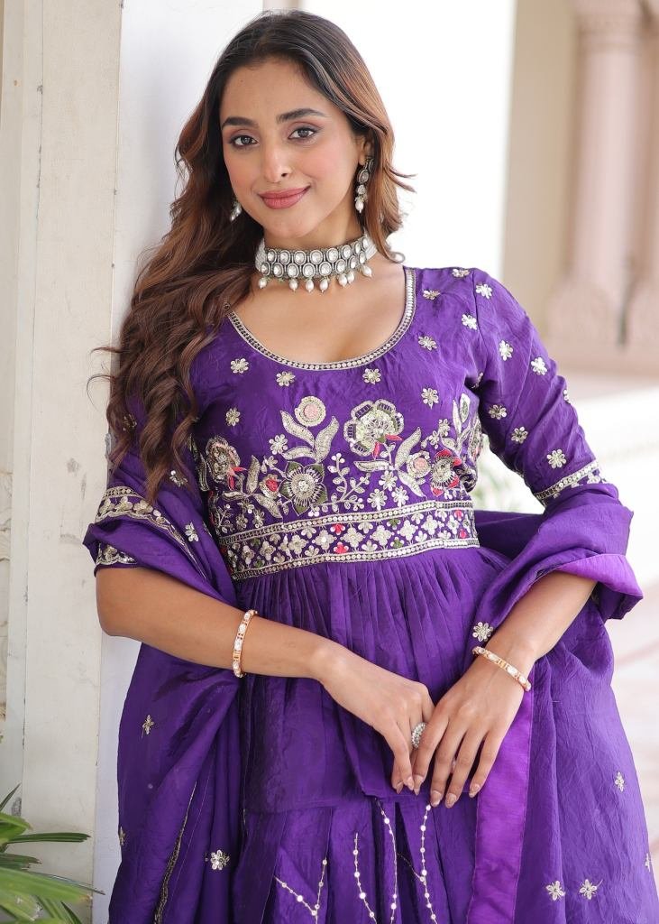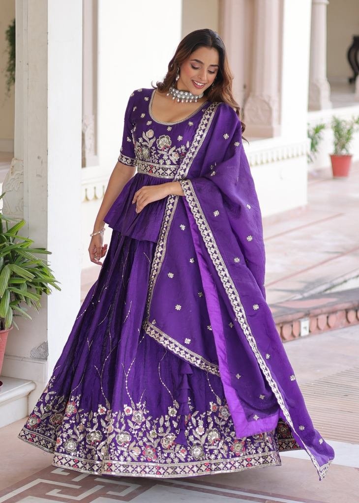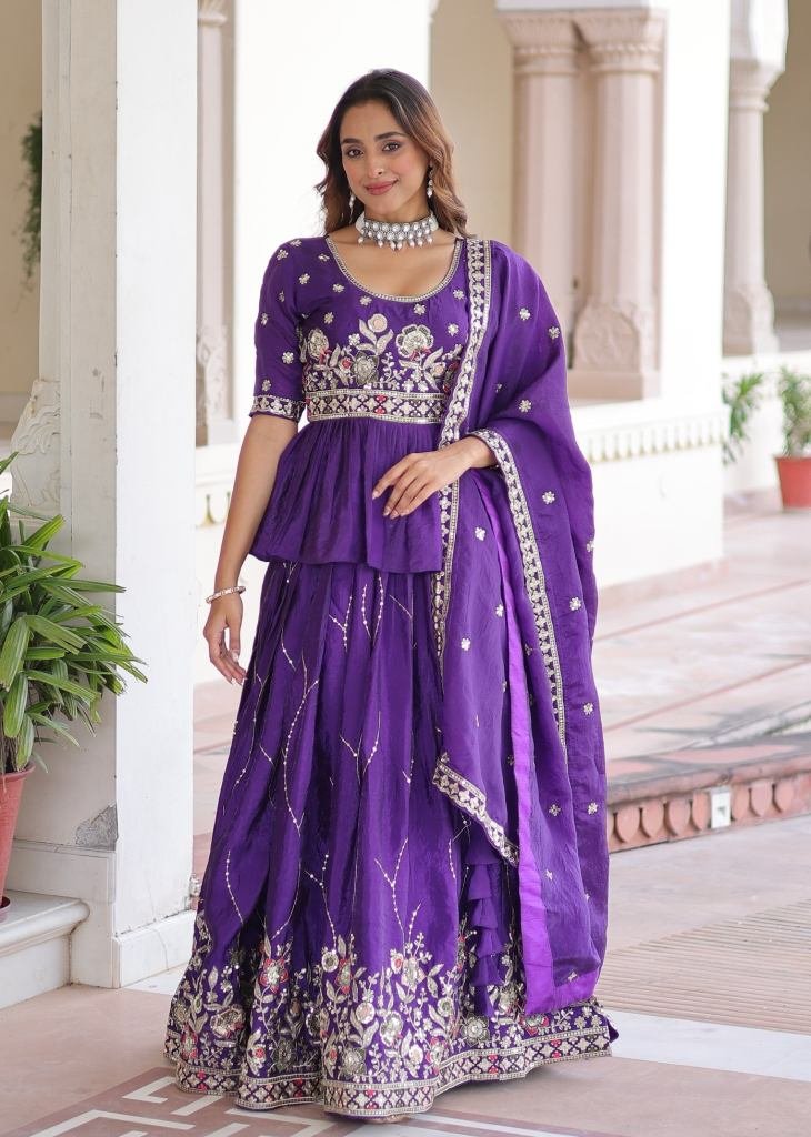 | NAME : | Designer Lehenga Choli Set Ready made Gold Crush With Multi Thread Embroidery Zari Sequence Work Purple Color KA DN 5059 |