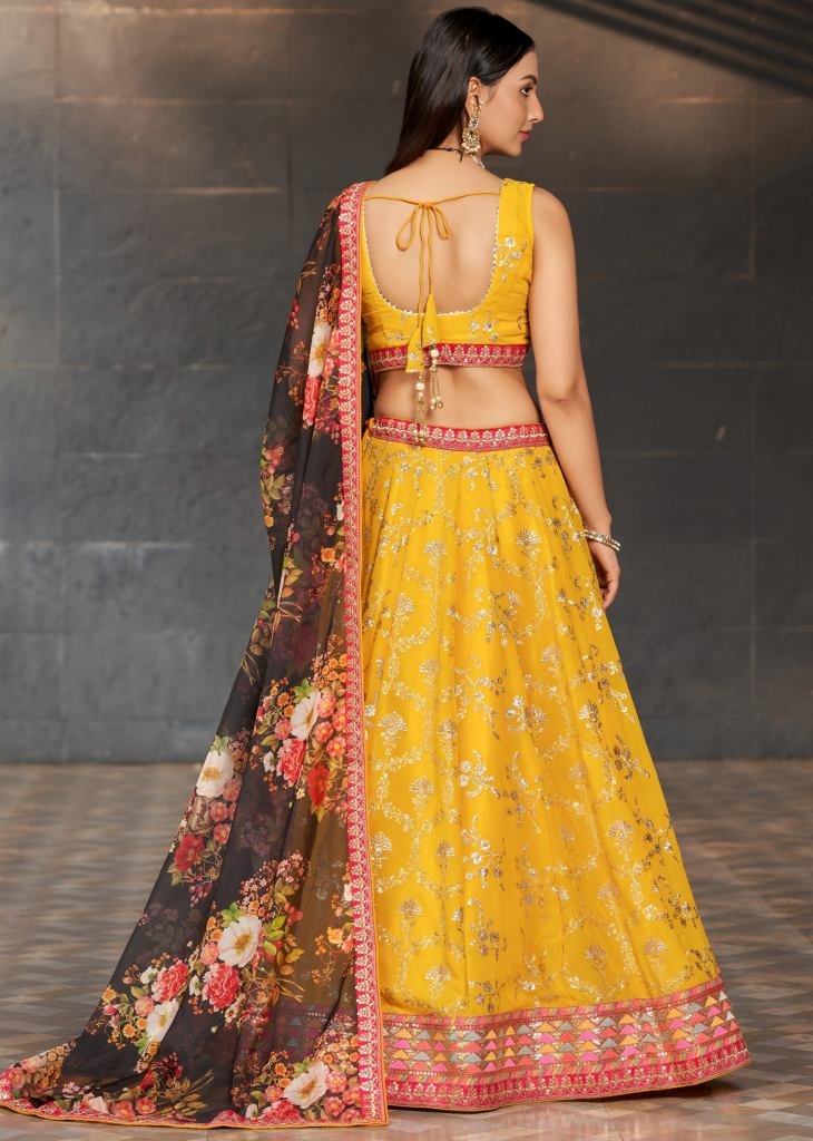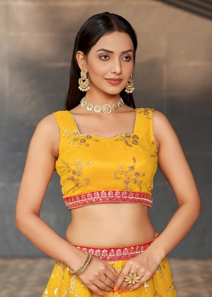 | NAME : | Designer Lehenga Set With Embroidery Work In Georgette Fabric Semi Stitched Yellow Color DN 18001 |