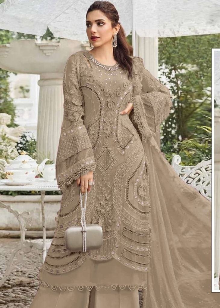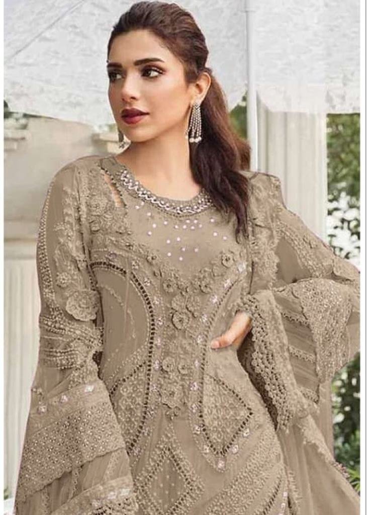 | NAME : | Designer Maaria A Pakistani Suit Heavy Faux Georgette With Embroidery Sequence Work With Moti And Neck Khatli Work Beige Color DN 1187 |