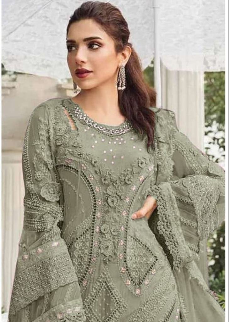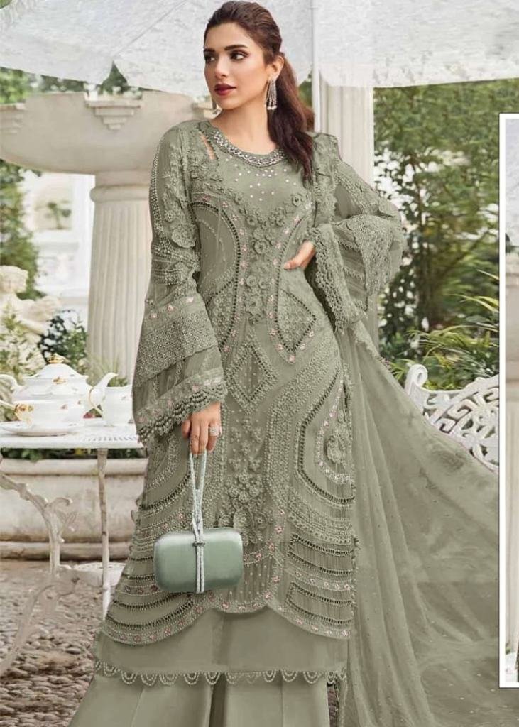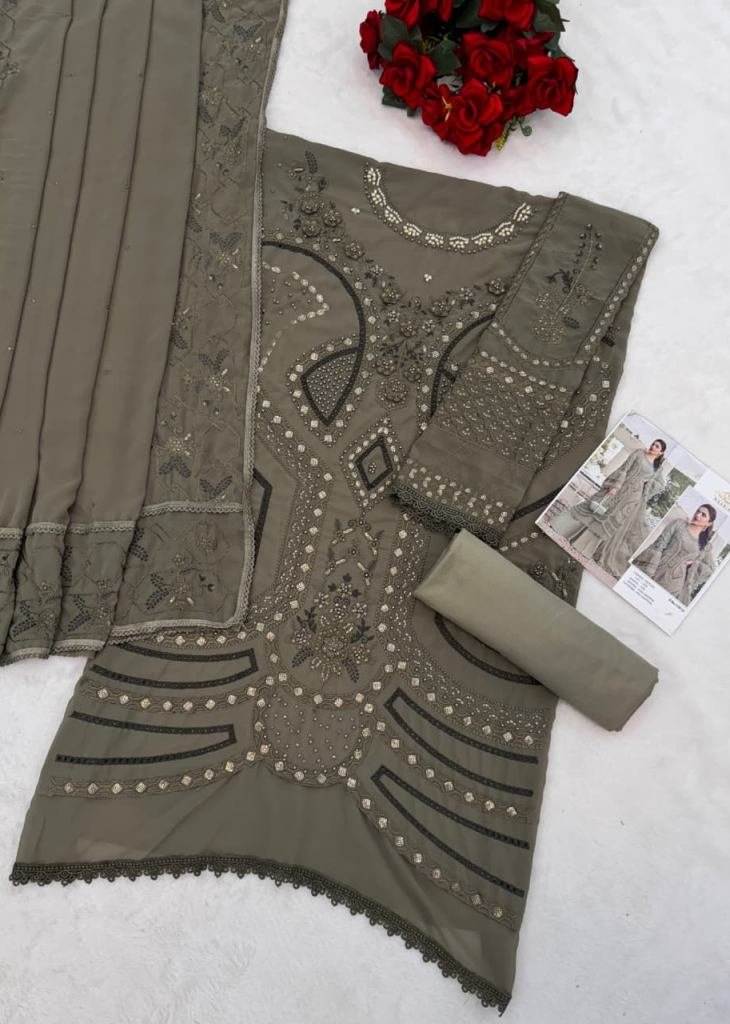 | NAME : | Designer Maaria A Pakistani Suit Heavy Faux Georgette With Embroidery Sequence Work With Moti And Neck Khatli Work Olive Green Color DN 1187 |