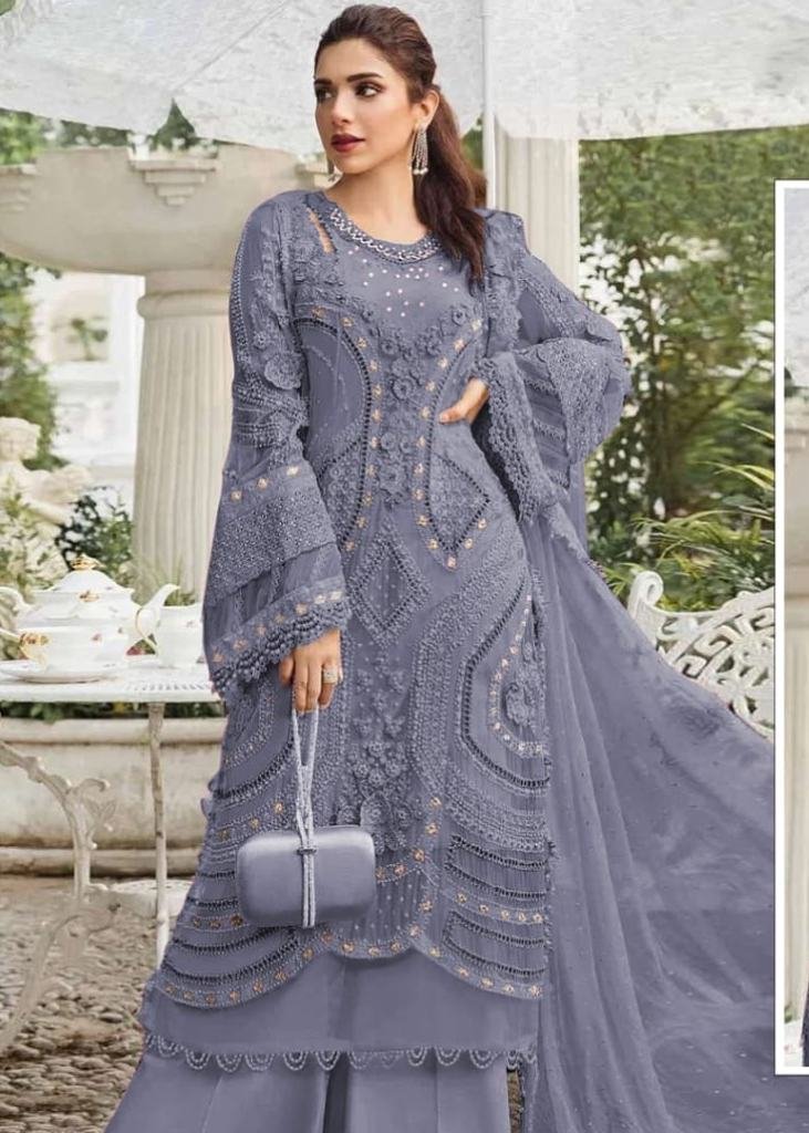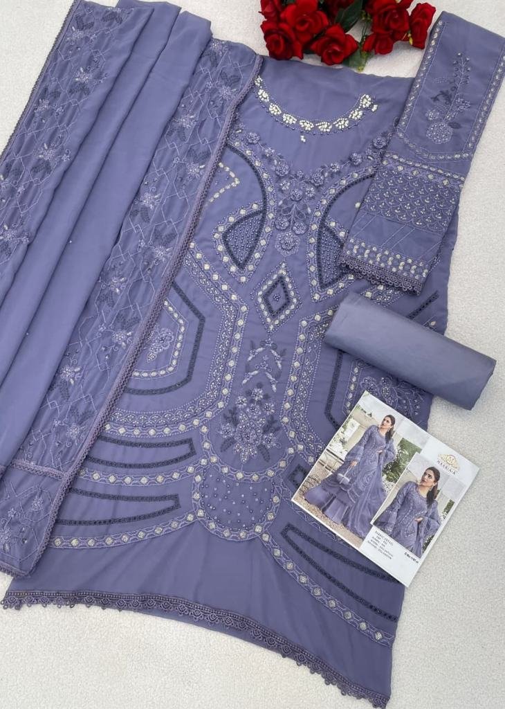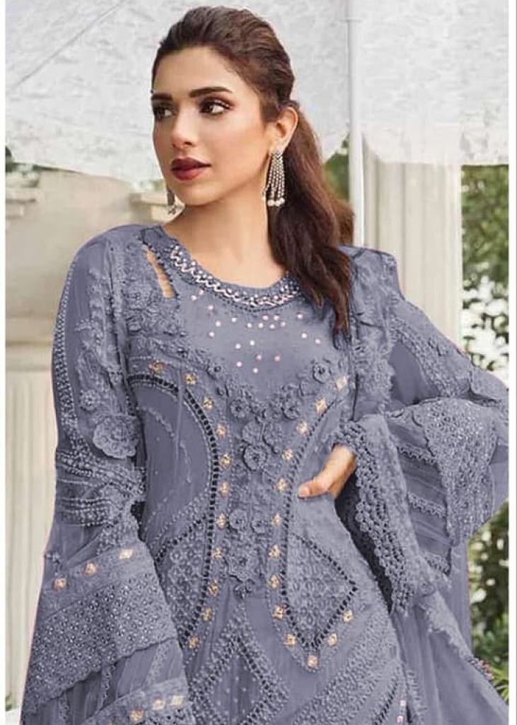 Designer Maaria A Pakistani Suit Heavy Faux Georgette With Embroidery Sequence Work With Moti And Neck Khatli Work Grey Color DN 1187