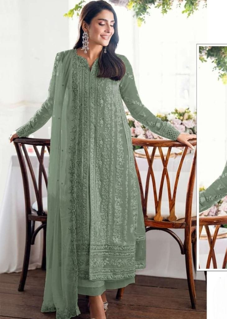 | NAME : | Designer Maaria Pakistani Suit Heavy Faux Georgette With Embroidery Sequence Work With Neck Khatli Work Pista Green Color A DN 1194 |