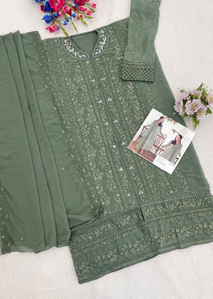 Designer Maaria Pakistani Suit Heavy Faux Georgette With Embroidery Sequence Work With Neck Khatli Work Pista Green Color A DN 1194