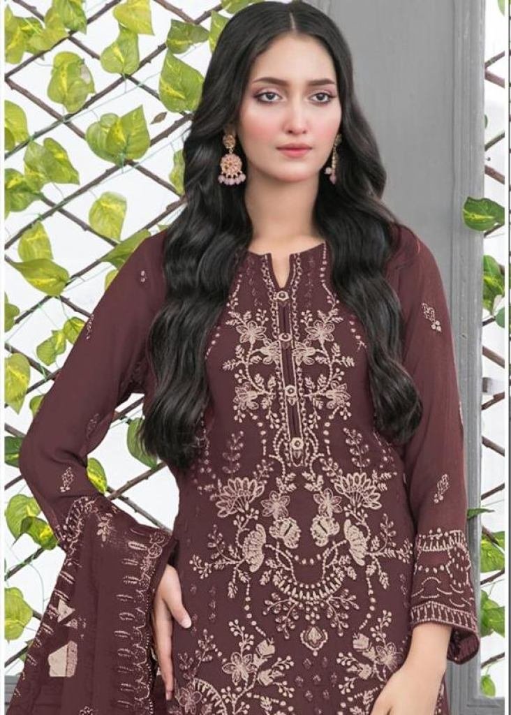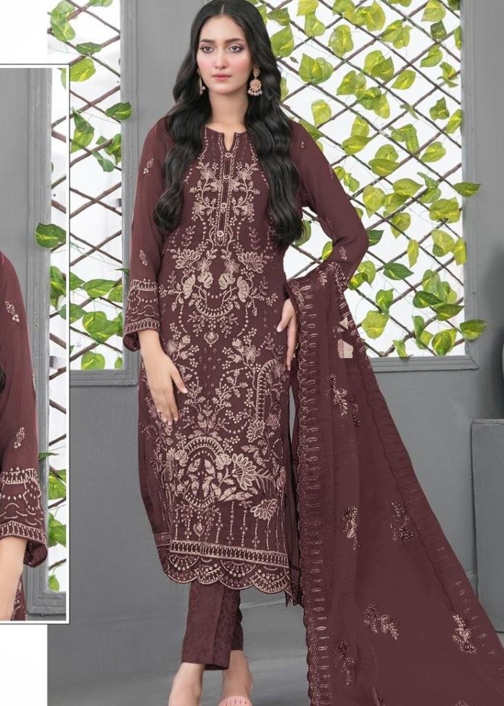 | NAME : | Designer Mah E Rooh Pakistani Suit Faux Georgette With Heavy Embroidery Sequence Work With Khatli Work Brown Color DN 4180 |