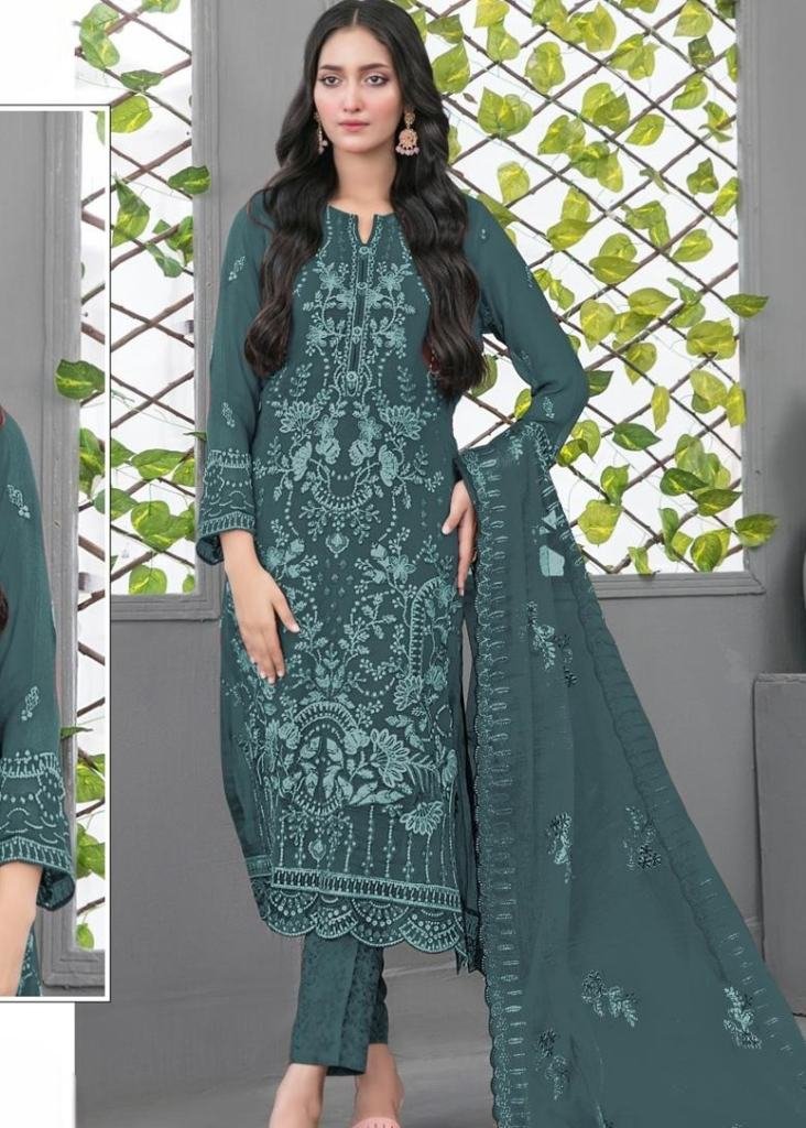| NAME : | Designer Mah E Rooh Pakistani Suit Faux Georgette With Heavy Embroidery Sequence Work With Khatli Work Teal Green Color DN 4180 |