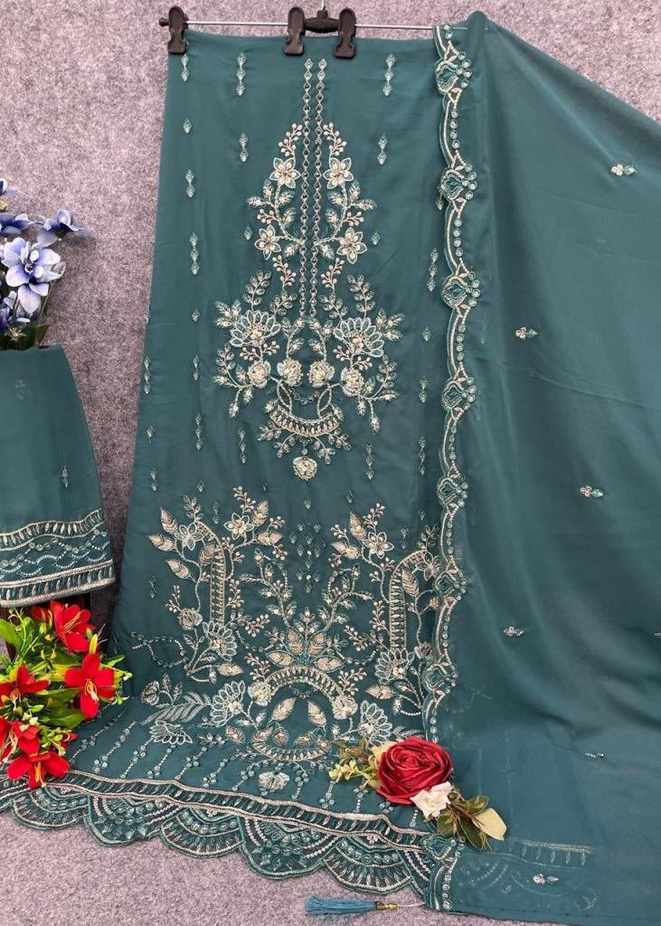 Designer Mah E Rooh Pakistani Suit Faux Georgette With Heavy Embroidery Sequence Work With Khatli Work Teal Green Color DN 4180