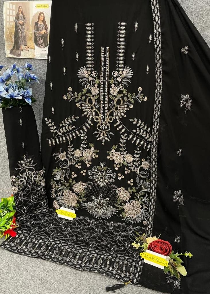 Designer Mah E Rooh Pakistani Suit With Sequences Embroidered Work And Handwork Khatli work Black Color DN 4149