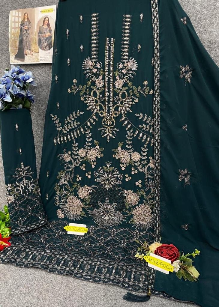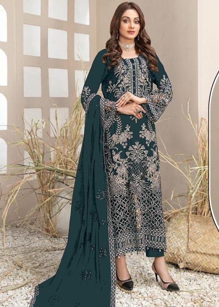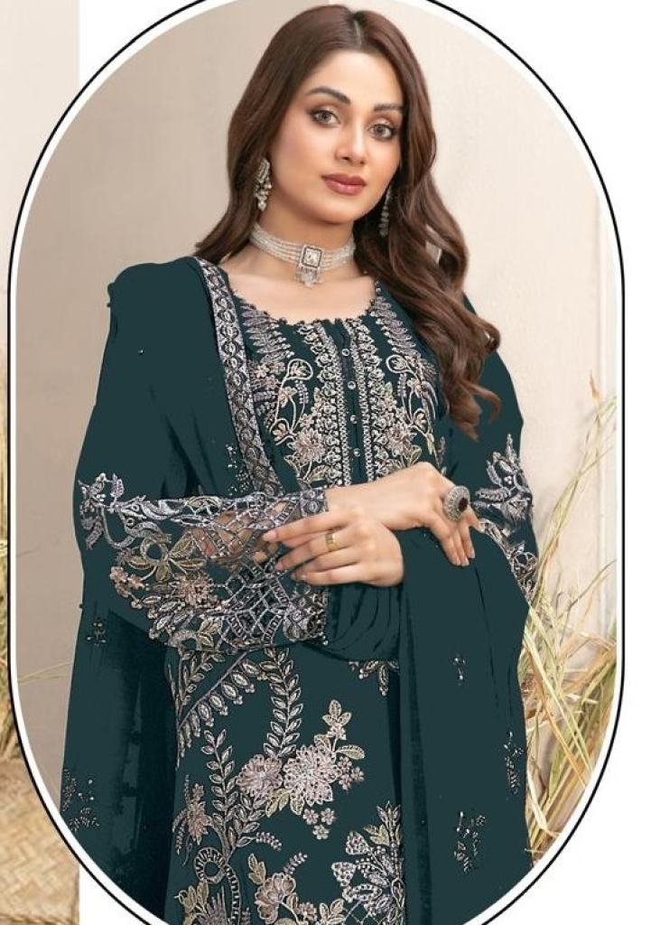 Designer Mah E Rooh Pakistani Suit with Sequences Embroidered Work And Handwork Khatli work Teal Blue Color DN 4149