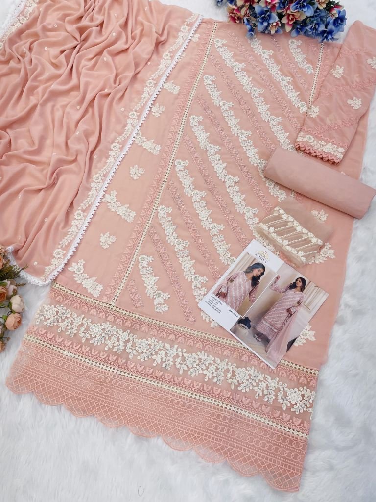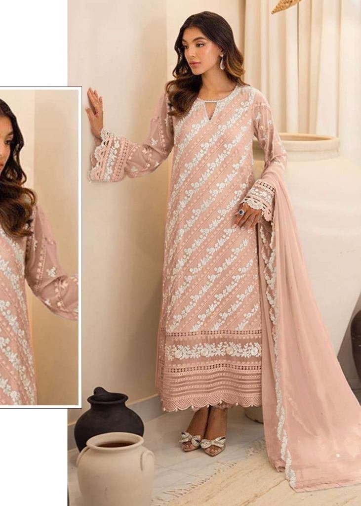 NAME : | Designer Pakistani Maaria A Heavy Fox Georgette With Embroidery Sequence Work With Zarkan Pakistani Suit Peach Color |
