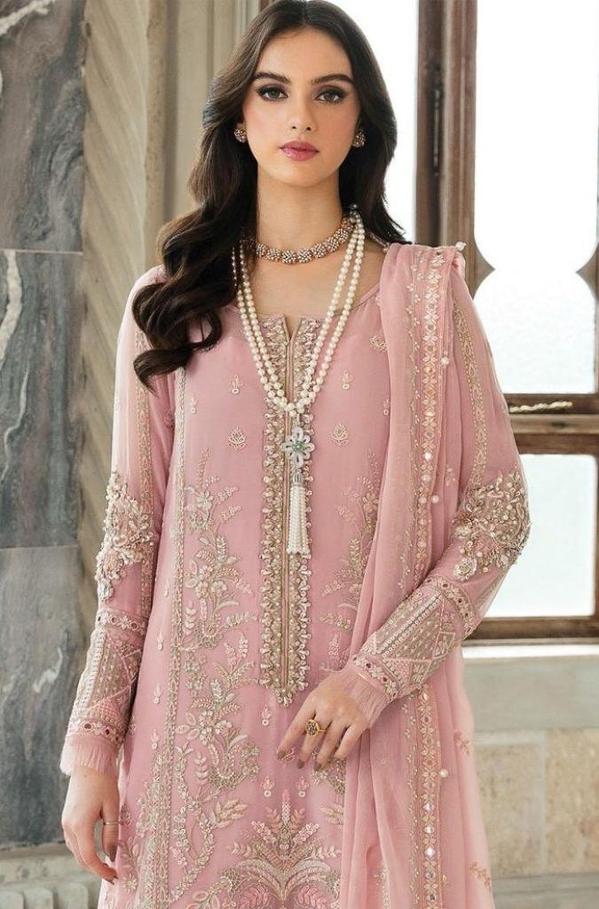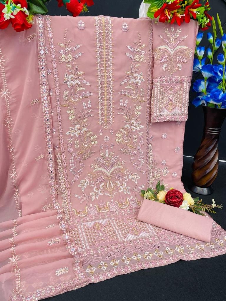 | NAME : | Designer Pakistani Suit In Heavy Faux Georgette With Heavy Embroidery And Sequence Work Peach Pink Color DN 1037 |