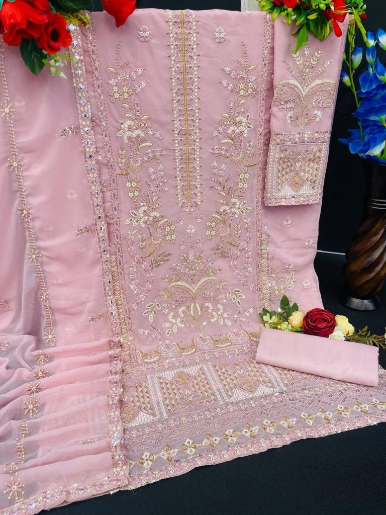 Designer Pakistani Suit In Heavy Faux Georgette With Heavy Embroidery And Sequence Work Light Pink Color DN 1037