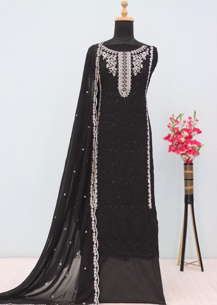 | NAME : | Designer Pakistani Suits Faux Georgette With Embroidery 3 mm Sequence Work Black Color DN 1302 |