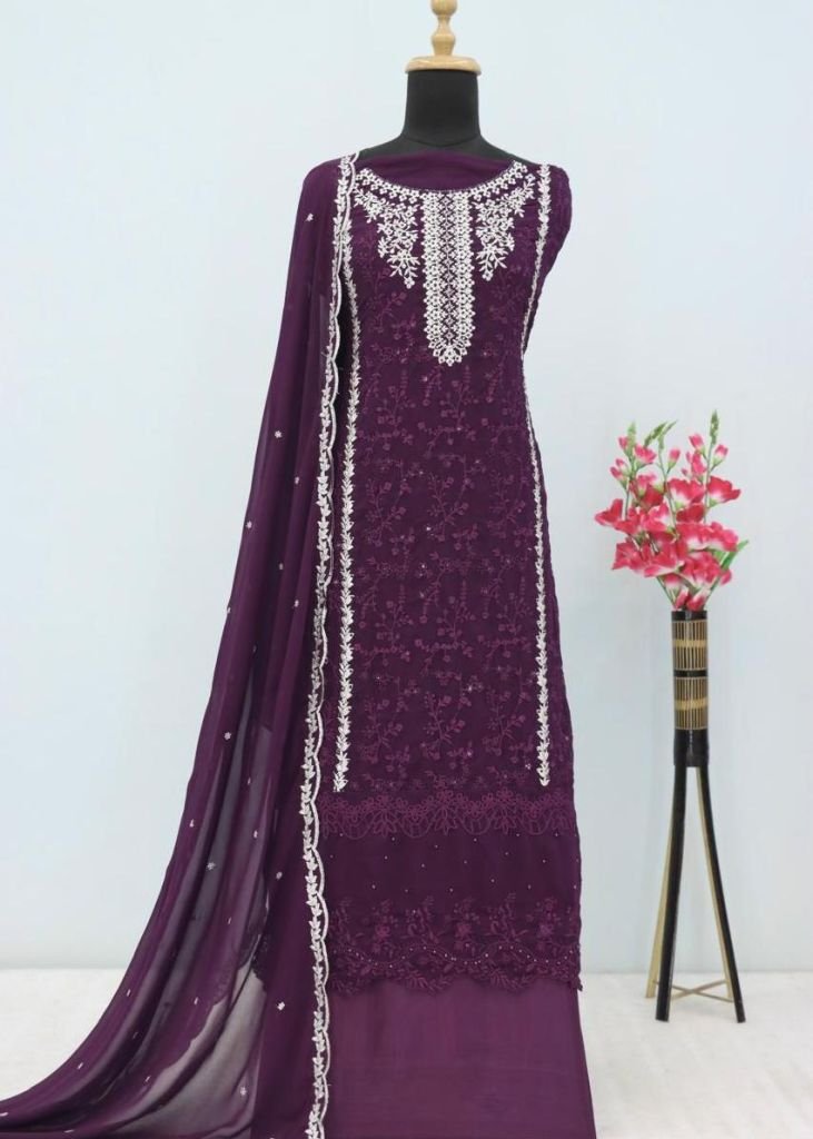 | NAME : | Designer Pakistani Suits Faux Georgette With Embroidery 3 mm Sequence Work Wine Color DN 1302 |