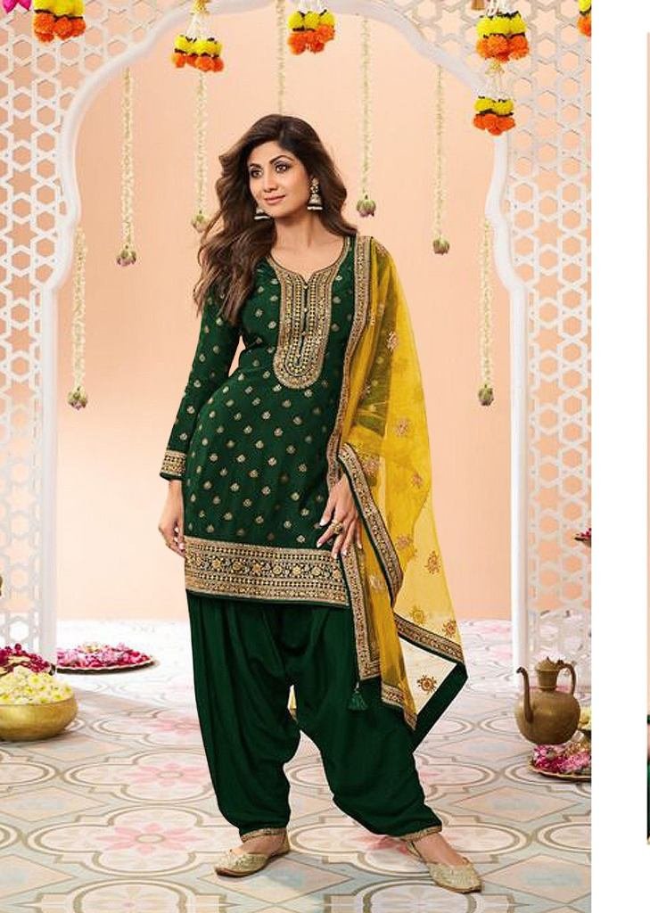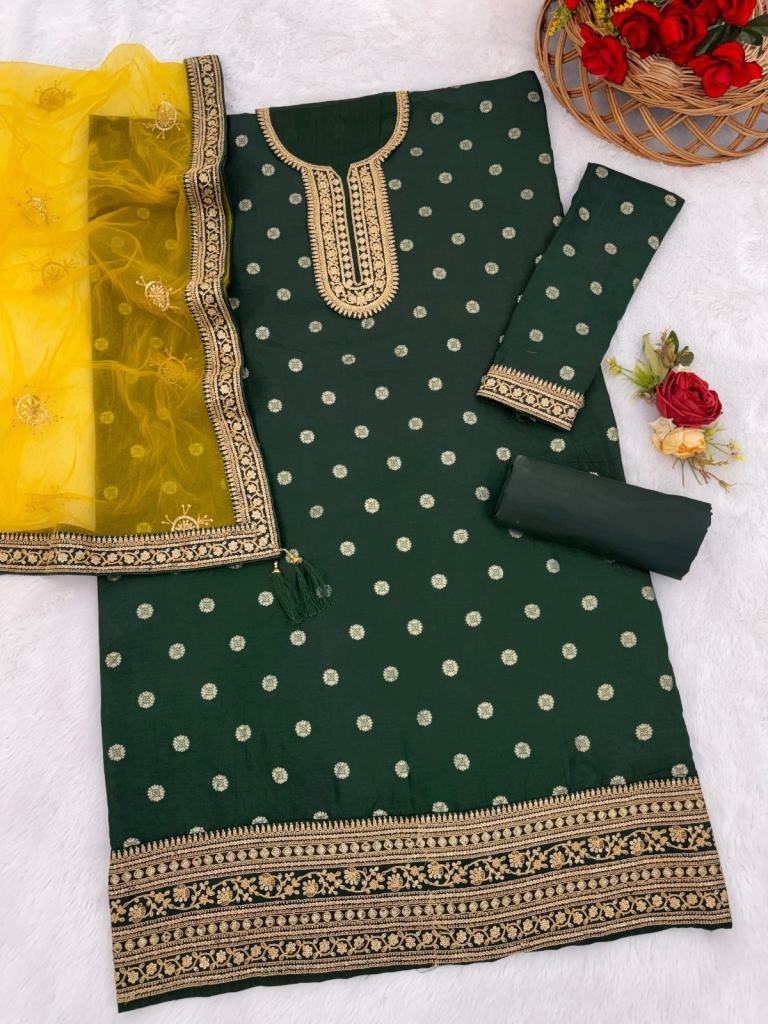 | NAME : | Designer Patiala Suits In Pure Viscose Jacquard With Sequence Embroidery Dark Green DN 704 |