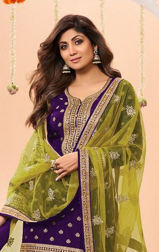 | NAME : | Designer Patiala Suits In Pure Viscose Jacquard With Sequence Embroidery Purple Color DN 704 |