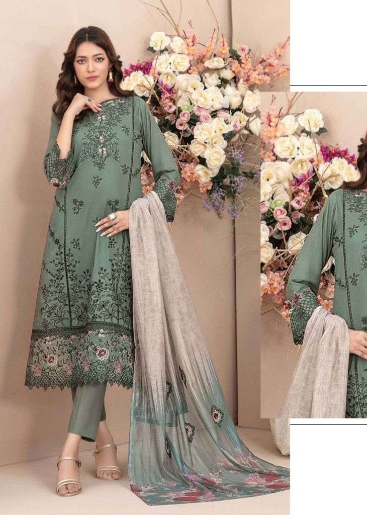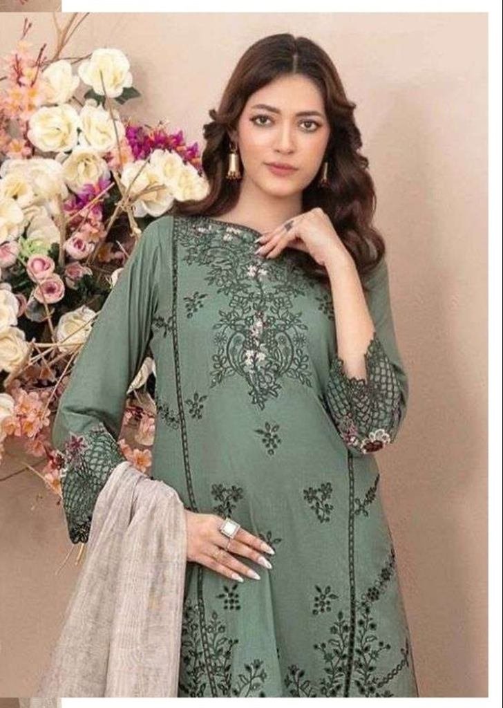 | NAME : | Designer Pure Cambric Cotton With Embroidered Sequence Work Pakistani Suit Olive Green Color DN 915 |