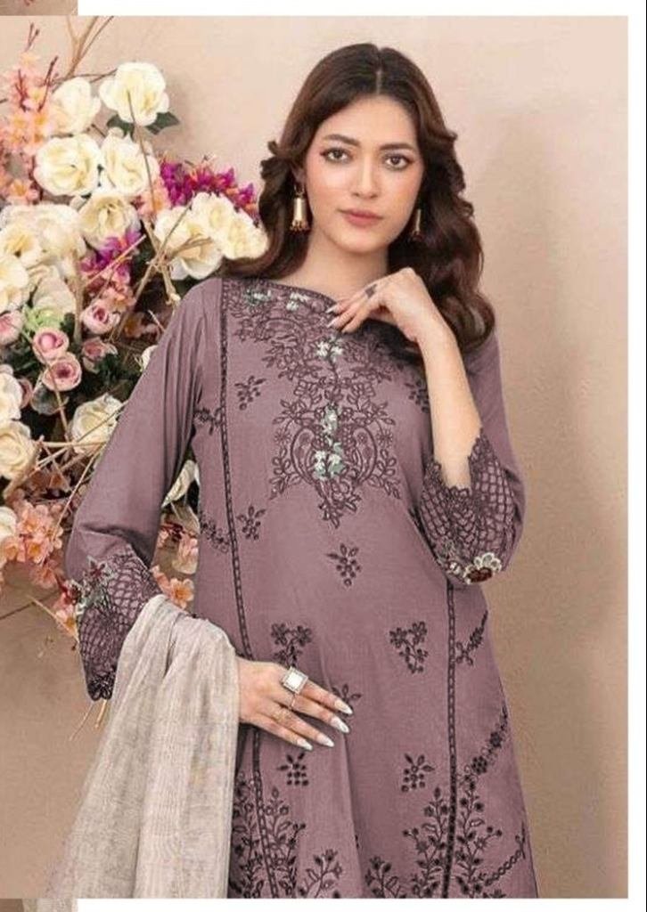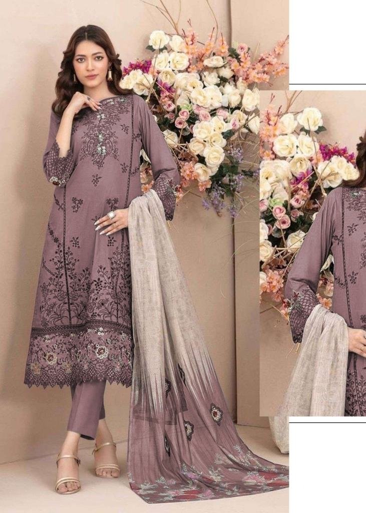 | NAME : | Designer Pure Cambric Cotton With Embroidered Sequence Work Pakistani Suit Purple Color DN 915 |