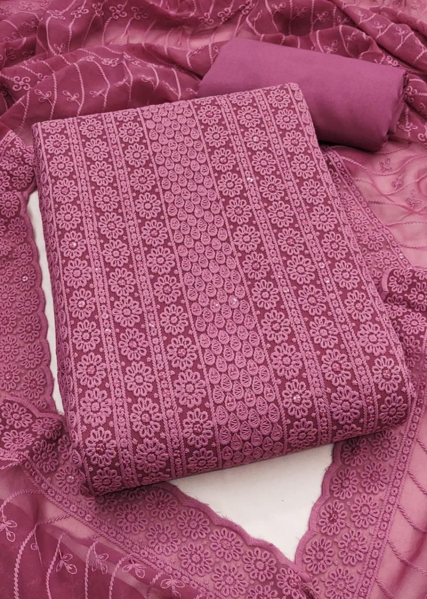 | NAME : | Designer Real Georgette Dress Material With Chicken Kari Work Export Quality In Pink Color |