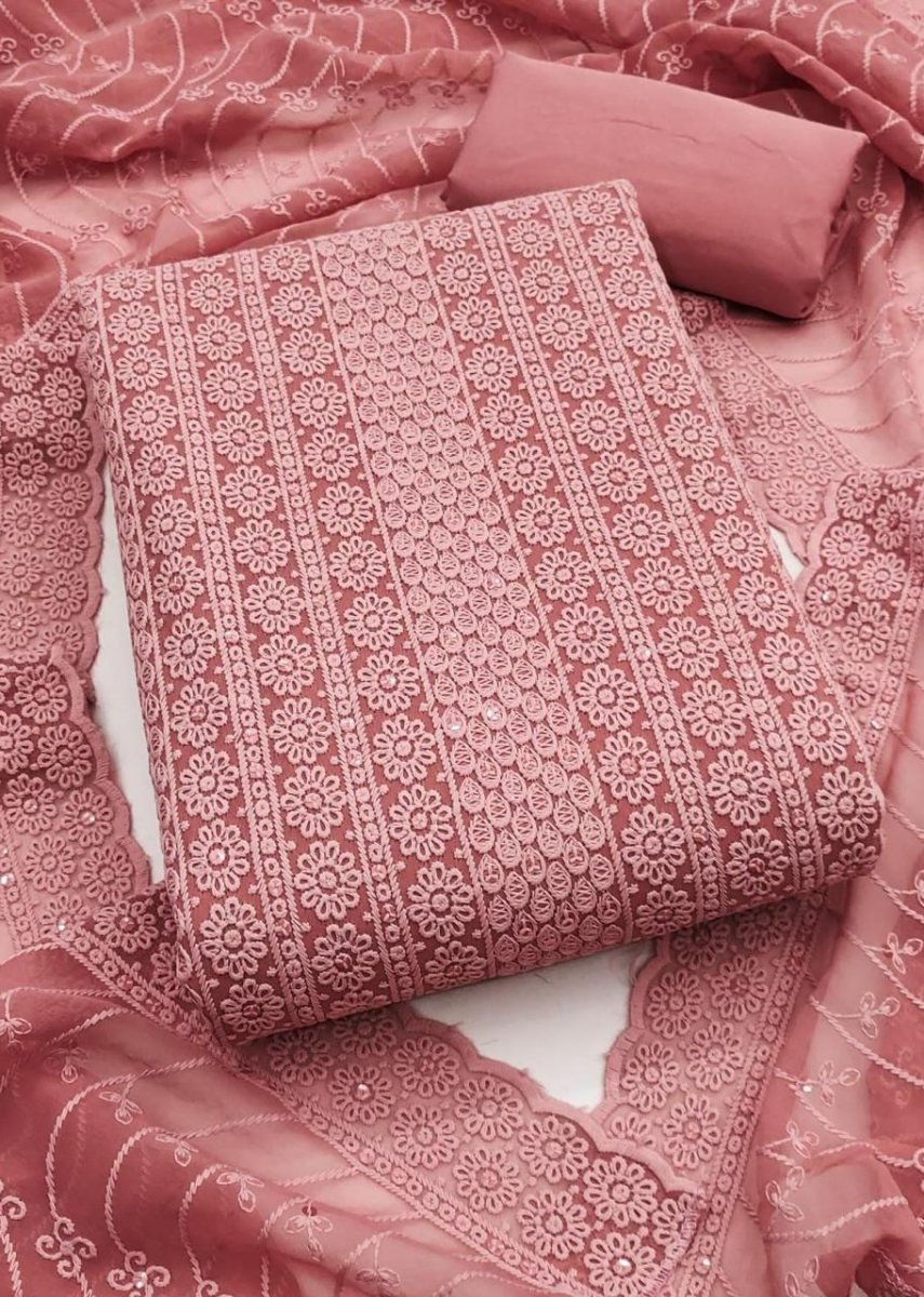 | NAME : | Designer Real Georgette Dress Material With Chicken Kari Work Export Quality In Baby Pink Color |