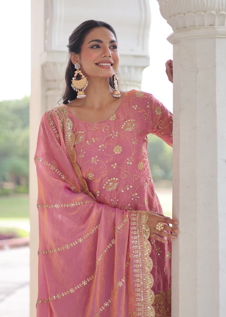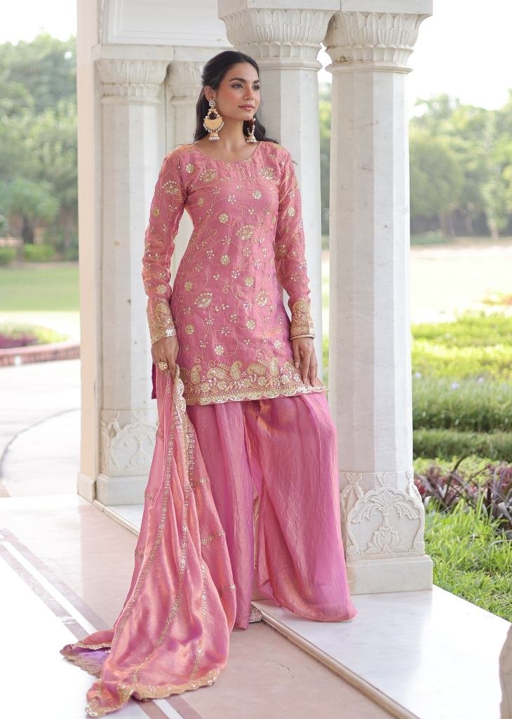 Designer Sharara Suit Fendy with Rich Sequences & Zari Embroidered Cut Work Light Pink Color DN 9300