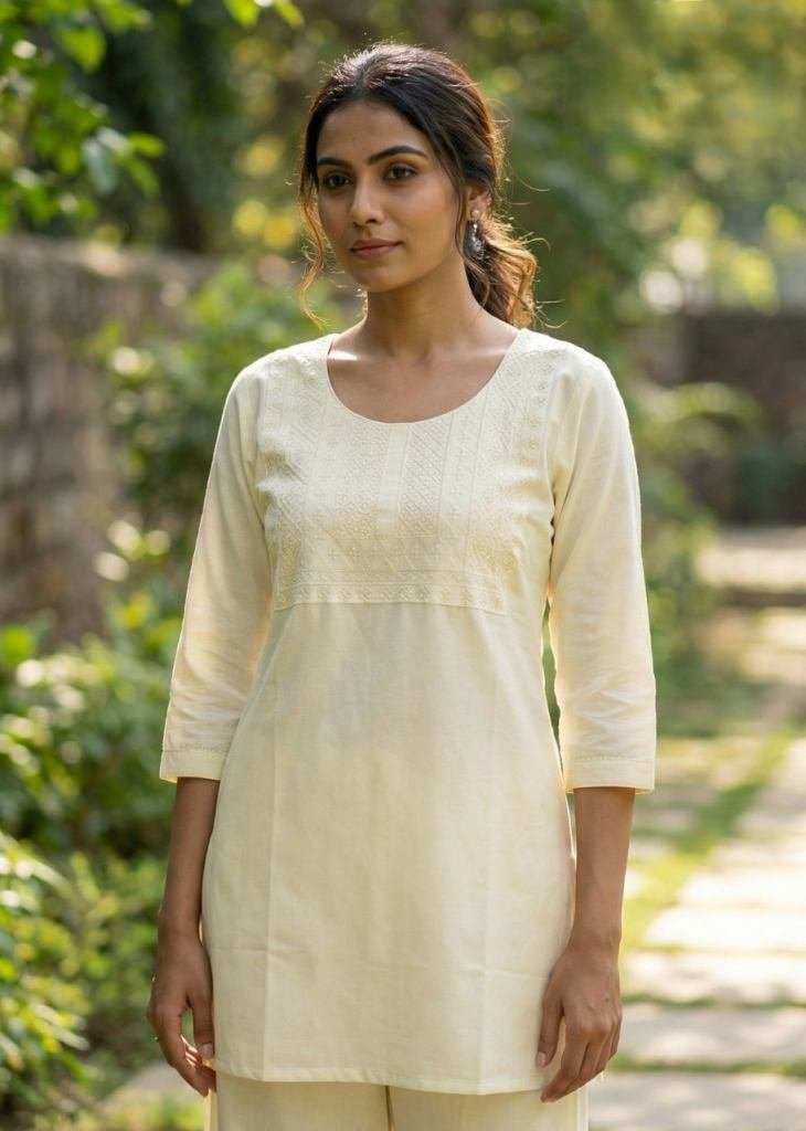 | NAME : | Dharmi Vol 3 Western Heavy Rayon Top With Embroidery Thread Work Off-White Color |