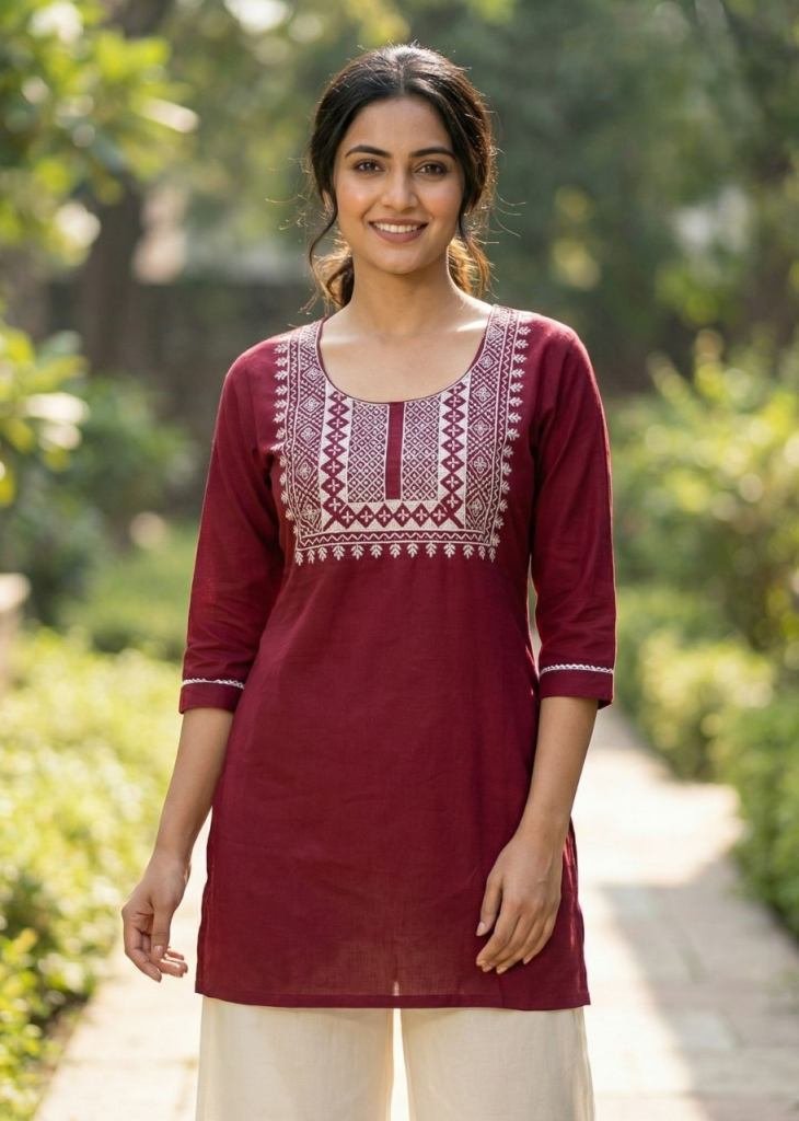 | NAME : | Dharmi Vol 3 Western Heavy Rayon Top With Embroidery Thread Work Maroon Color |