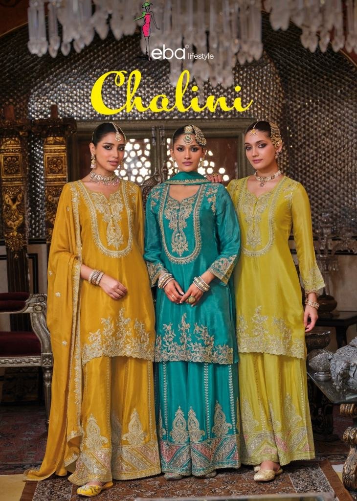 Eba Lifestyle Chalini Chinon With Embroidered Ready Made Palazzo Suits catalog