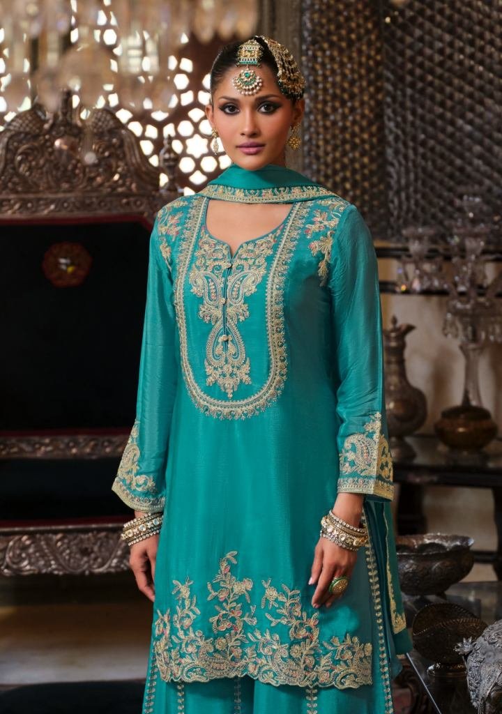 Today Presenting Designer Salwar Kameez Palazzo Suit heavy Chinon with embroidery work Readymade Full stitched